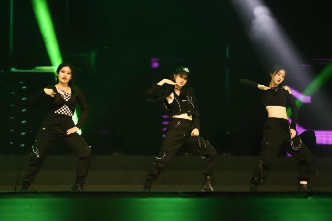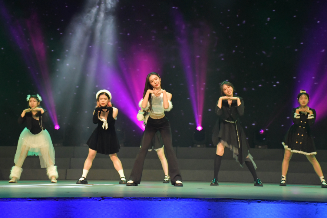 接下来,10位22级新生带来《Narcissistic》韩舞串烧。同学们绚烂的舞姿配合着震撼的舞曲、律动的节奏,让全体观众充分领略舞蹈的魅力。