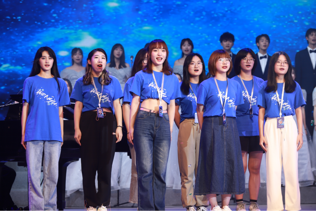 最后,文娱部全体成员合唱《星辰大海》,将晚会引入了尾声。正如主持人所说“明月今照我,我便与大海同享月的光辉,我们的征途是星辰大海”——以《星辰大海》为结尾,是希望管院师生能够一往无前,奋进新征程。