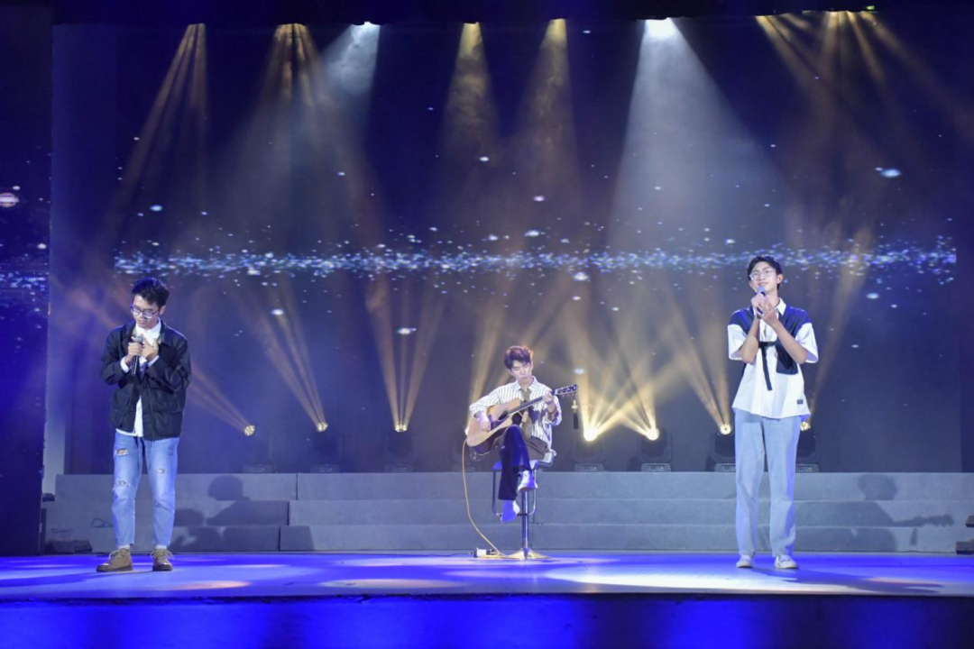 一条条精心剪辑的视频,一曲曲温馨的音乐,在同学们的欢呼中,乐队表演《七里香》拉开了晚会的帷幕。“几句是非,也无法将我的热情冷却”“窗台蝴蝶,像诗里纷飞的美丽章节”——经典的编曲、优美的旋律、默契的配合……共同演绎出了乐曲里青春的温馨与甜蜜,也让晚会气氛逐渐升温。