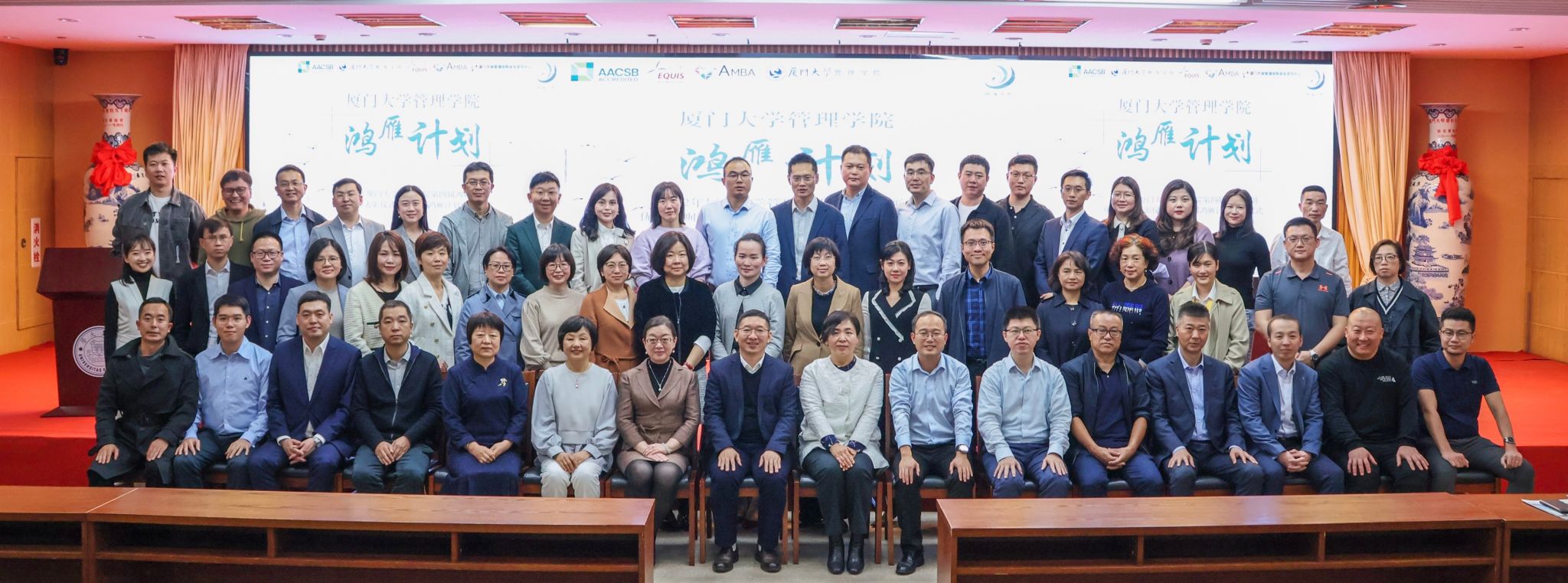 2022年12月9日晚上19点30分,厦门大学管理学院第四届鸿雁计划优秀导师表彰仪式暨2022年第五届鸿雁计划启动仪式在科学艺术中心一楼多功能厅顺利举行。厦门大学校友总会秘书处秘书长张伟、管理学院副院长白云涛、管理学院党委副书记戴蓥、校友总会秘书处联络部主任李绍玉、管理学院职业发展中心主任王燊、管理学院团委副书记揭上锋以及第四届鸿雁计划优秀导师代表、第五届鸿雁计划导师与学生代表出席了本次活动。仪式由管理学院兼职辅导员李奕凡主持。