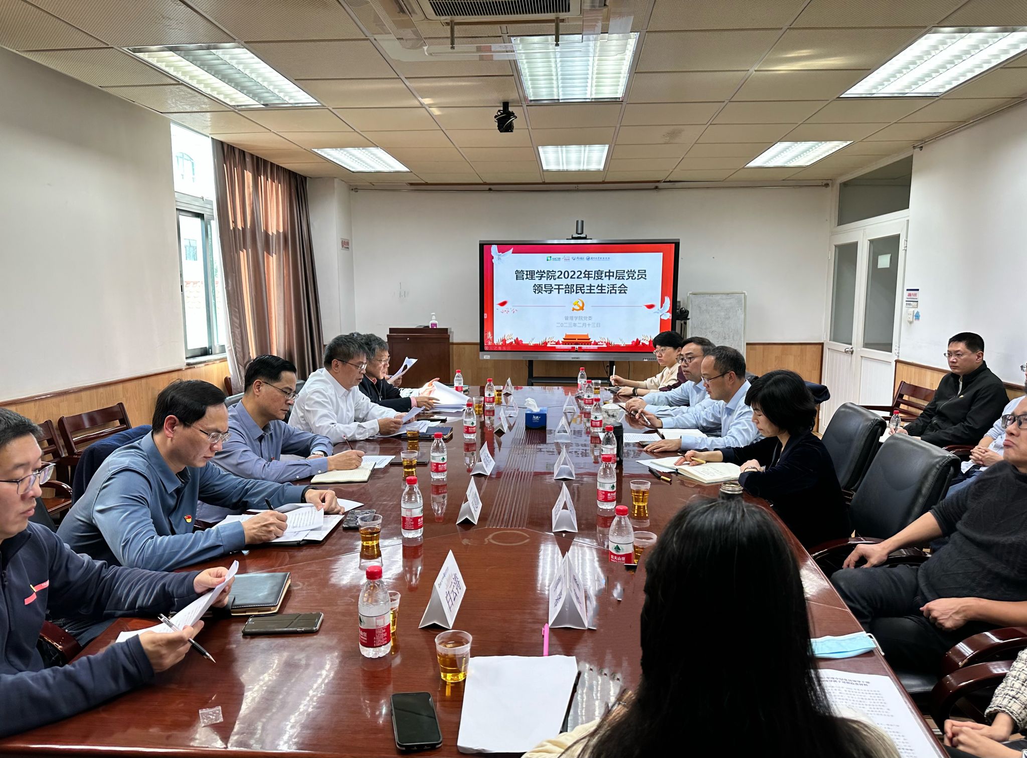 根据校党委的部署要求,2月13日下午,管理学院在嘉庚一301召开2022年度中层党员领导干部民主生活会。学院党员领导班子以“全面贯彻习近平新时代中国特色社会主义思想,深刻领悟‘两个确立’的决定性意义,增强‘四个意识’、坚定‘四个自信’、做到‘两个维护’,团结带领党员领导干部群众以奋发有为的精神贯彻落实党的二十大作出的重大决策部署”为主题,深入进行对照检查,严肃认真开展批评与自我批评。学校副校长邱伟杰、第三督导组副组长杨蔷莅会指导。院党委书记邱七星主持会议,学院党员领导干部参加会议,各系(中心)中心主任(副主任)及教工党支部书记代表、学院团委、工会相关负责人列席会议。