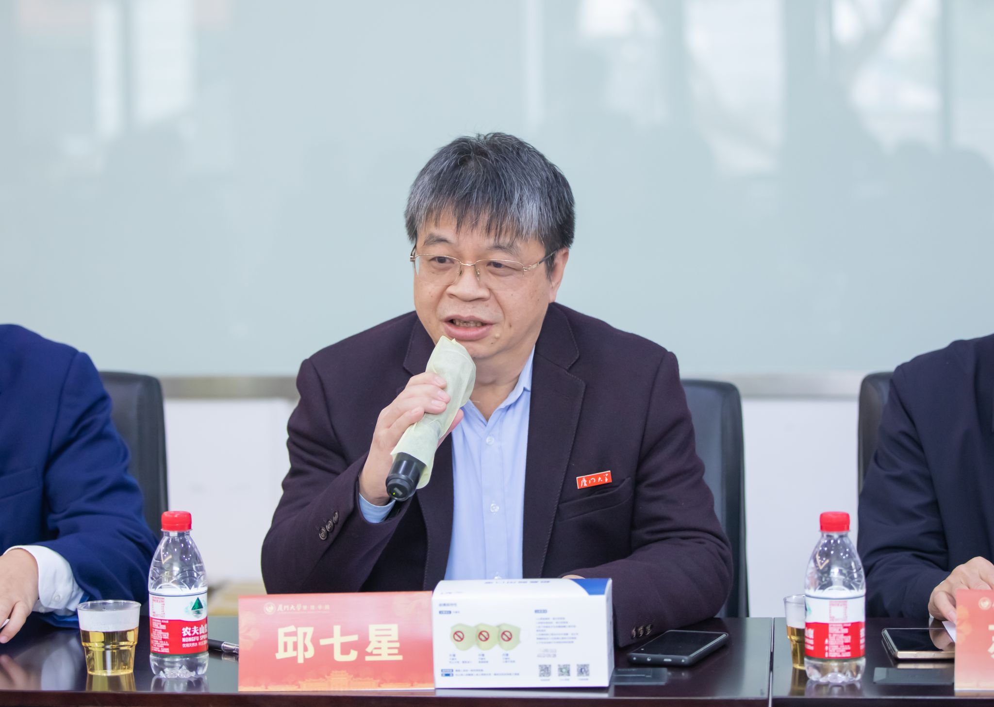 邱七星书记代表厦门大学向万泰科技和康凯生物两家企业的慷慨捐赠以及辅仁大学谢邦昌副校长的积极促成表示感谢。他表示,过去三年间,两岸同胞与新冠肺炎疫情开展了英勇不懈的斗争。当前,祖国大陆已进入“乙类乙管”常态化防控阶段,但全球疫情仍在流行,病毒还在不断变异,疫情防控工作还不能松劲,感谢万泰科技和康凯生物联合捐赠的50万片ACT银铜钛医用口罩,助力厦大继续做好疫情防控工作。