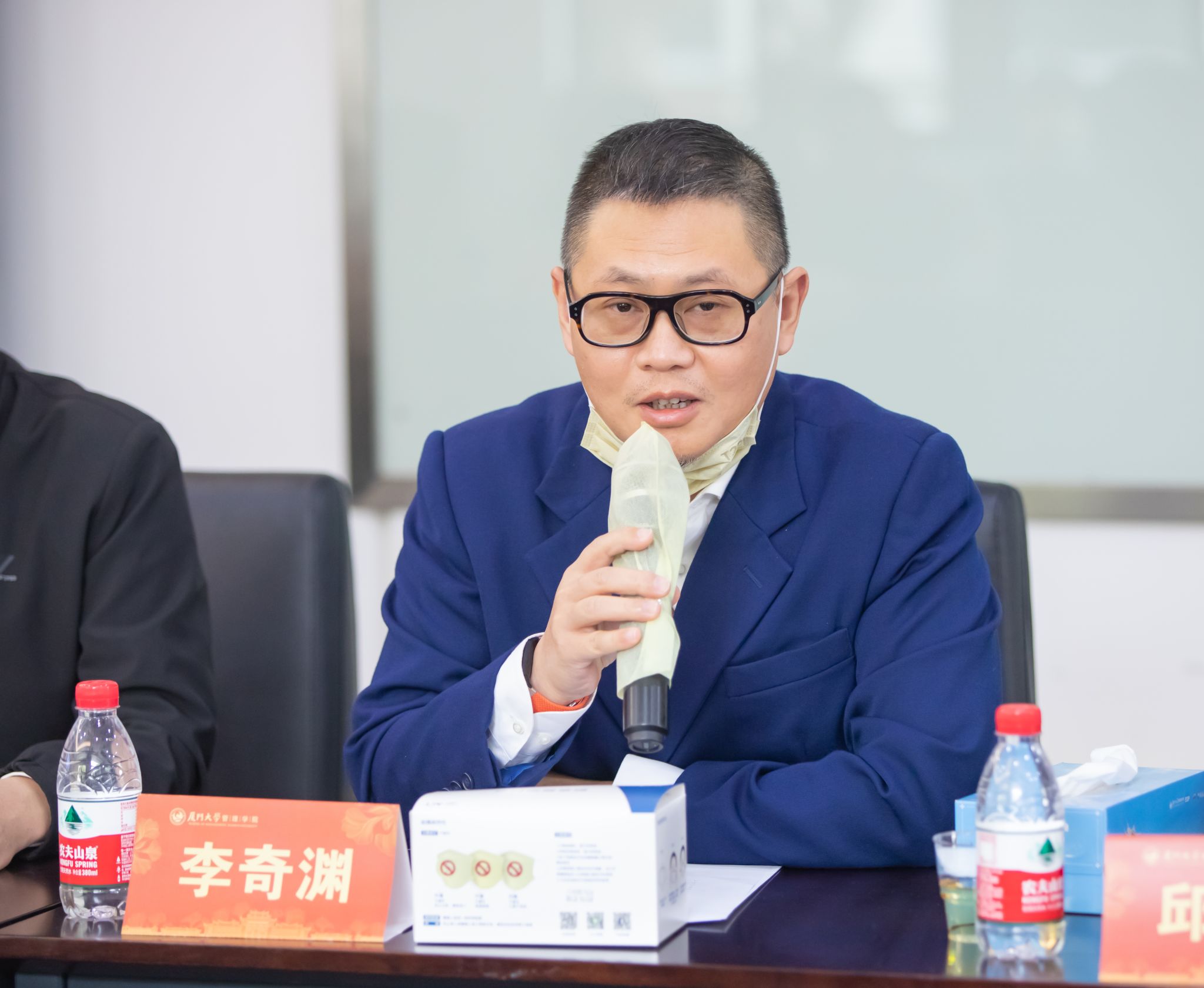 李奇渊副院长代表厦门大学健康医疗大数据国家研究院向捐赠方表示感谢,并表示将积极配合辅仁大学和万泰科技,共同深入研究ACT银铜钛口罩的特性与效果,为企业开拓市场、造福百姓贡献力量。
