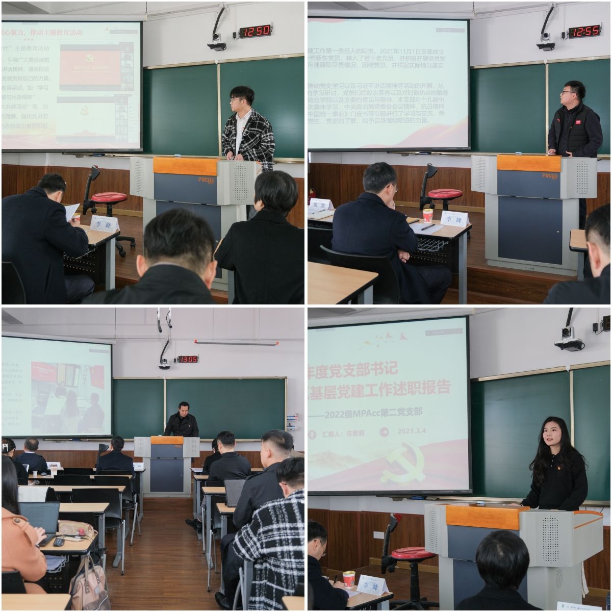 会上,49名学生党支部书记聚焦落实新时代党的建设总要求和基层党建工作部署要求,围绕落实支部“七个有力”建设目标,重点就履行党建责任与落实党建重点任务情况进行了汇报,总结了上一年支部工作的主要做法和成效,分析存在的问题和原因,并在此基础上提出下一步工作思路和措施。