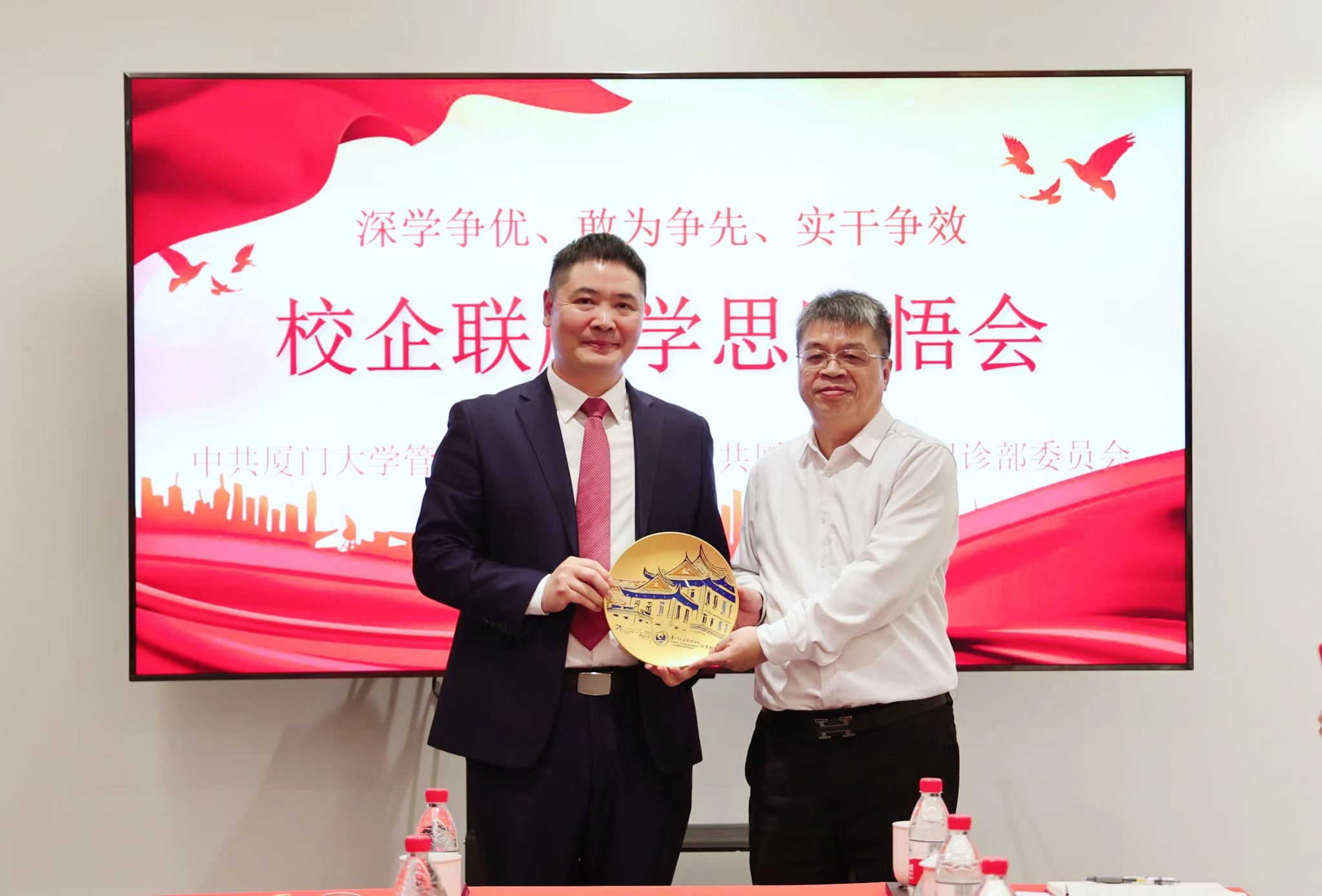 为进一步深入学习贯彻党的二十大精神,切实用党的二十大精神武装头脑、指导实践、推动工作,3月9日上午,管理学院党委书记邱七星,副书记郑碧娇、戴蓥,学院教工支部书记、支委等一行14人前往校友企业——厦门国宇健康管理中心交流学习。国宇健康管理中心总经理郭东宇,党委书记、副总经理郭灯亮,湖里区人大代表、副总经理赵红梅,区总工会委员、副总经理纪毅正等参与交流活动。
