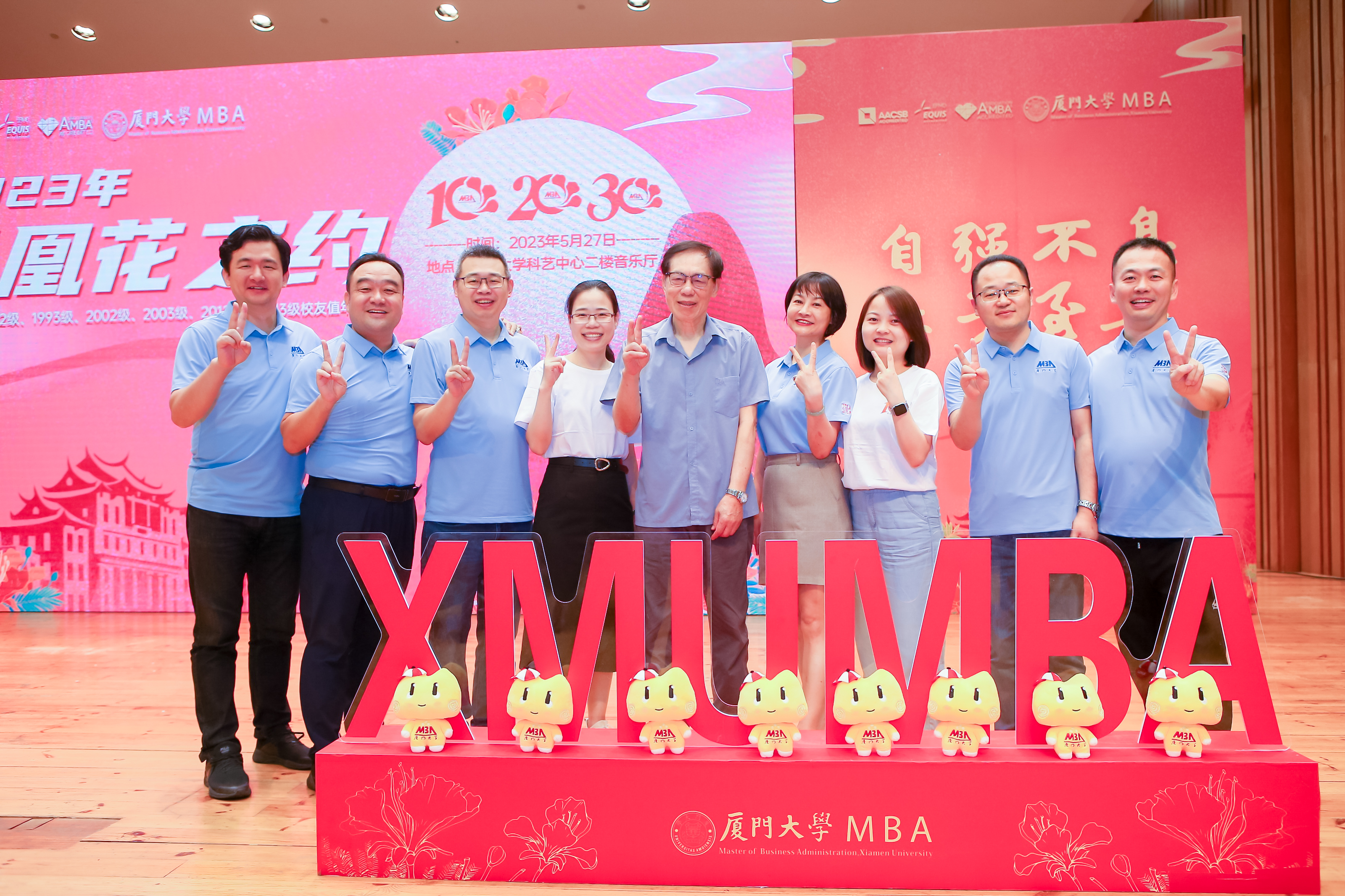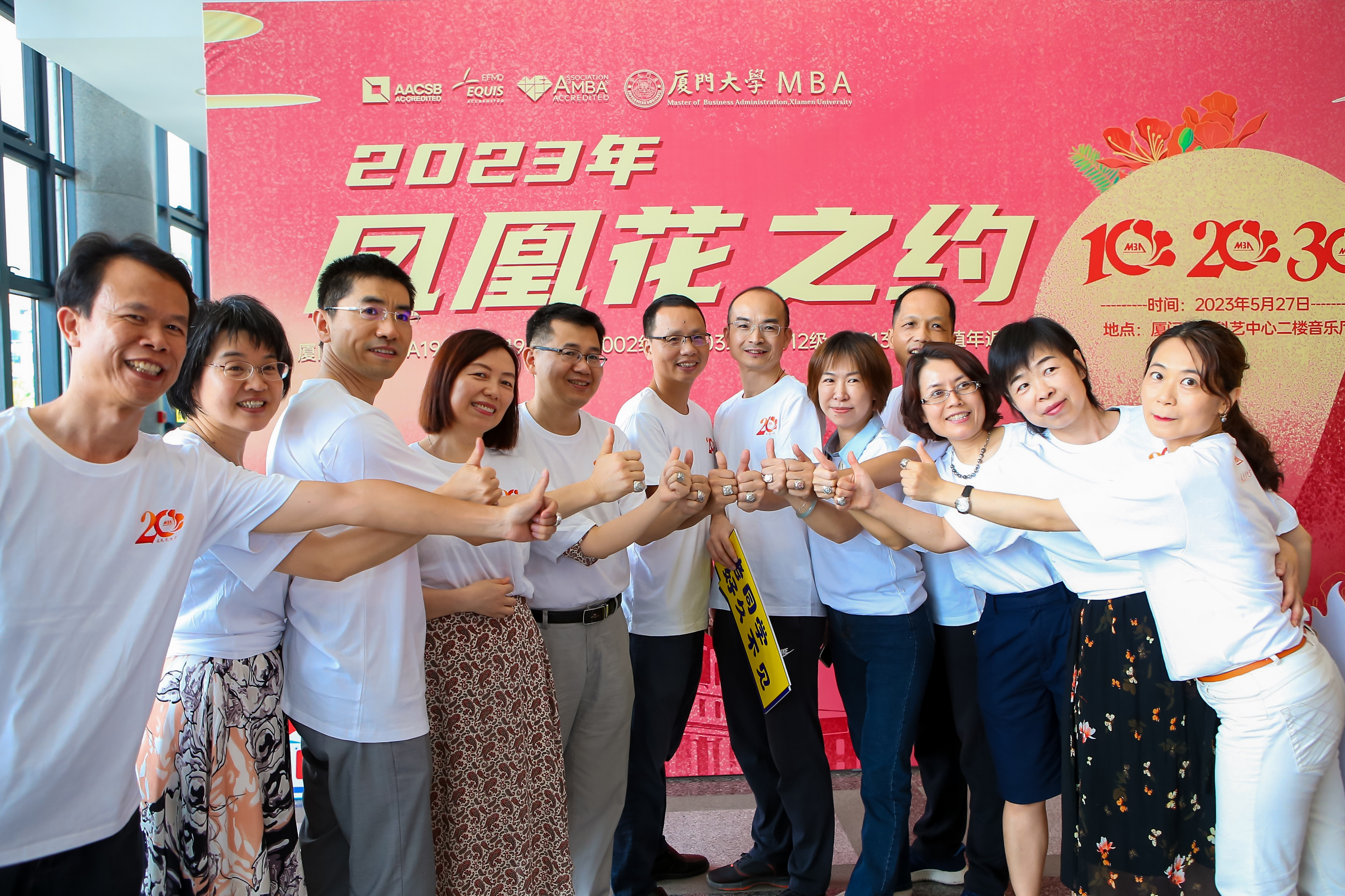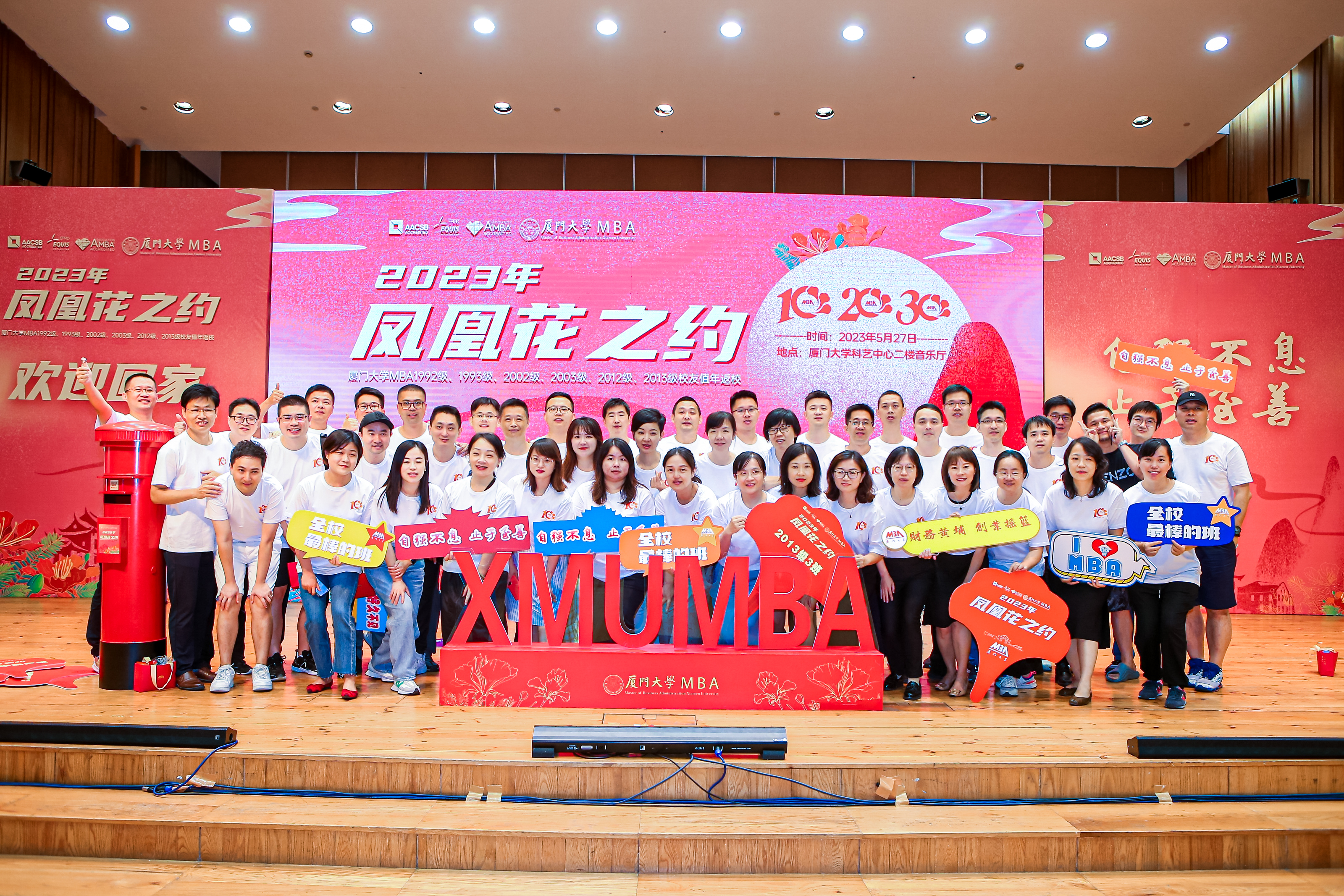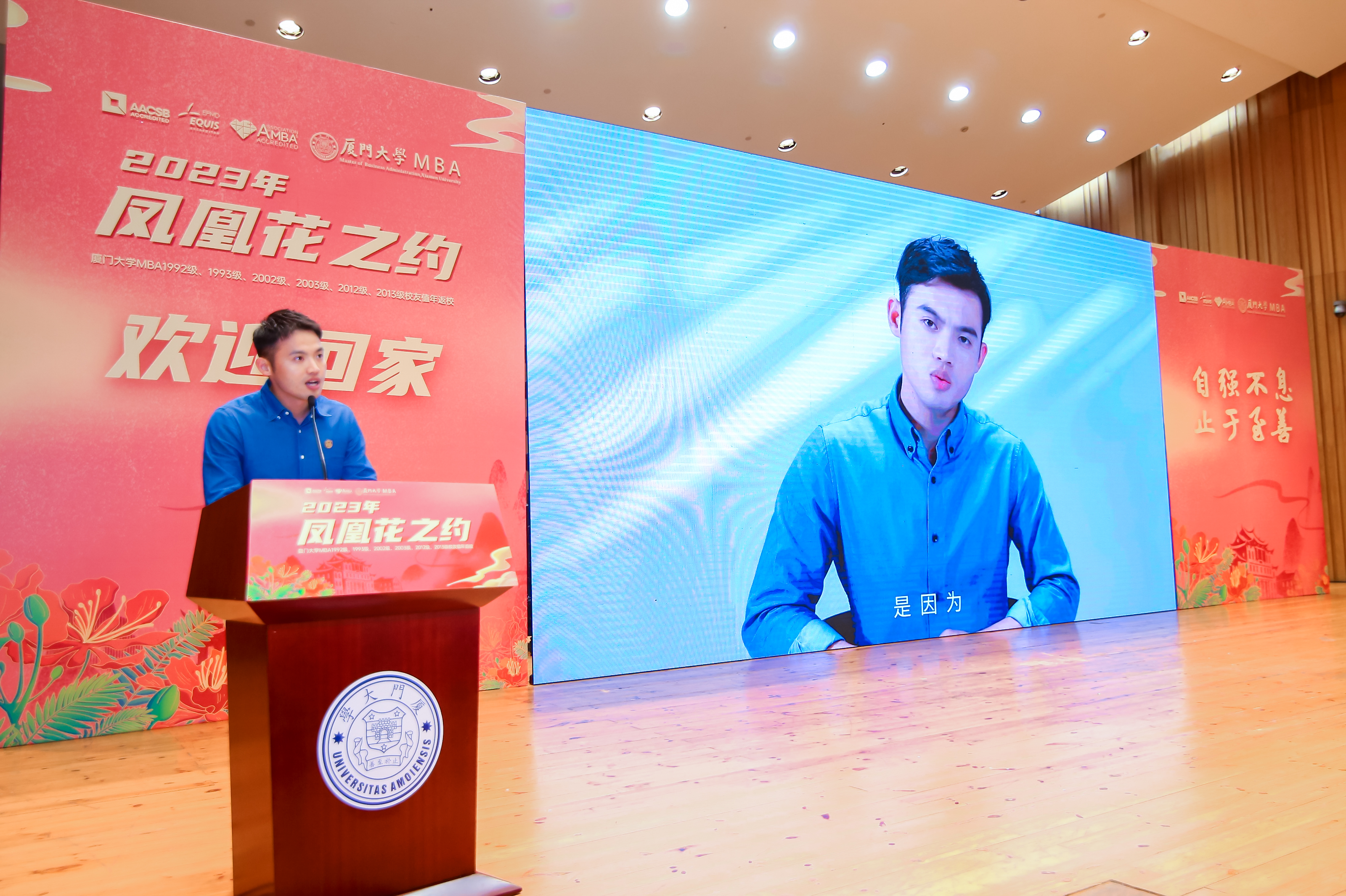 2023年5月27日,厦门大学MBA 2023年度“凤凰花之约”校友返校典礼在厦大科艺中心二楼音乐厅圆满举办。芙蓉湖畔,但观厦园花开正炽;音乐厅中,且喜师生济济一堂。厦门大学管理学院党委书记张明智老师、MBA中心主任屈文洲老师、MBA中心副主任袁喜娜老师、MBA中心孟林明老师、洪锡熙老师、赵蓓老师莅临会场,与值年校友同赴约、共谈话,在卅载光阴的轴线上联结与相逢。典礼由21级MBA周琳同学主持。