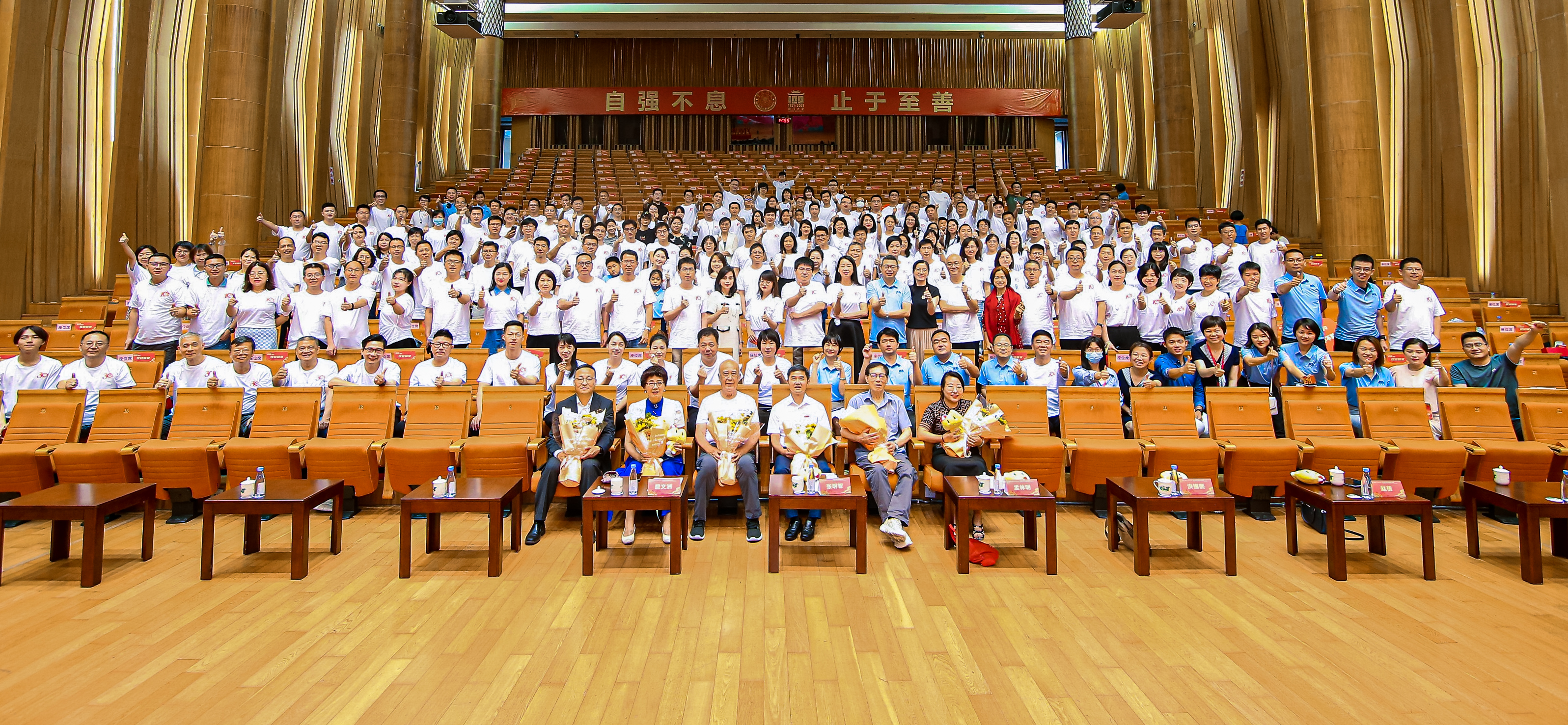 时间行至14:50,各级校友们身着MBA纪念衫为恩师献花,所有与会人员合影留念,意在定格此刻,铭记当下。在师生默契配合与现场人员的调度下,“自强不息,止于至善,财务黄埔,创业摇篮”的呐喊声与厦门大学校歌一齐响彻典礼会场,也同样镌刻于在座师生心间。