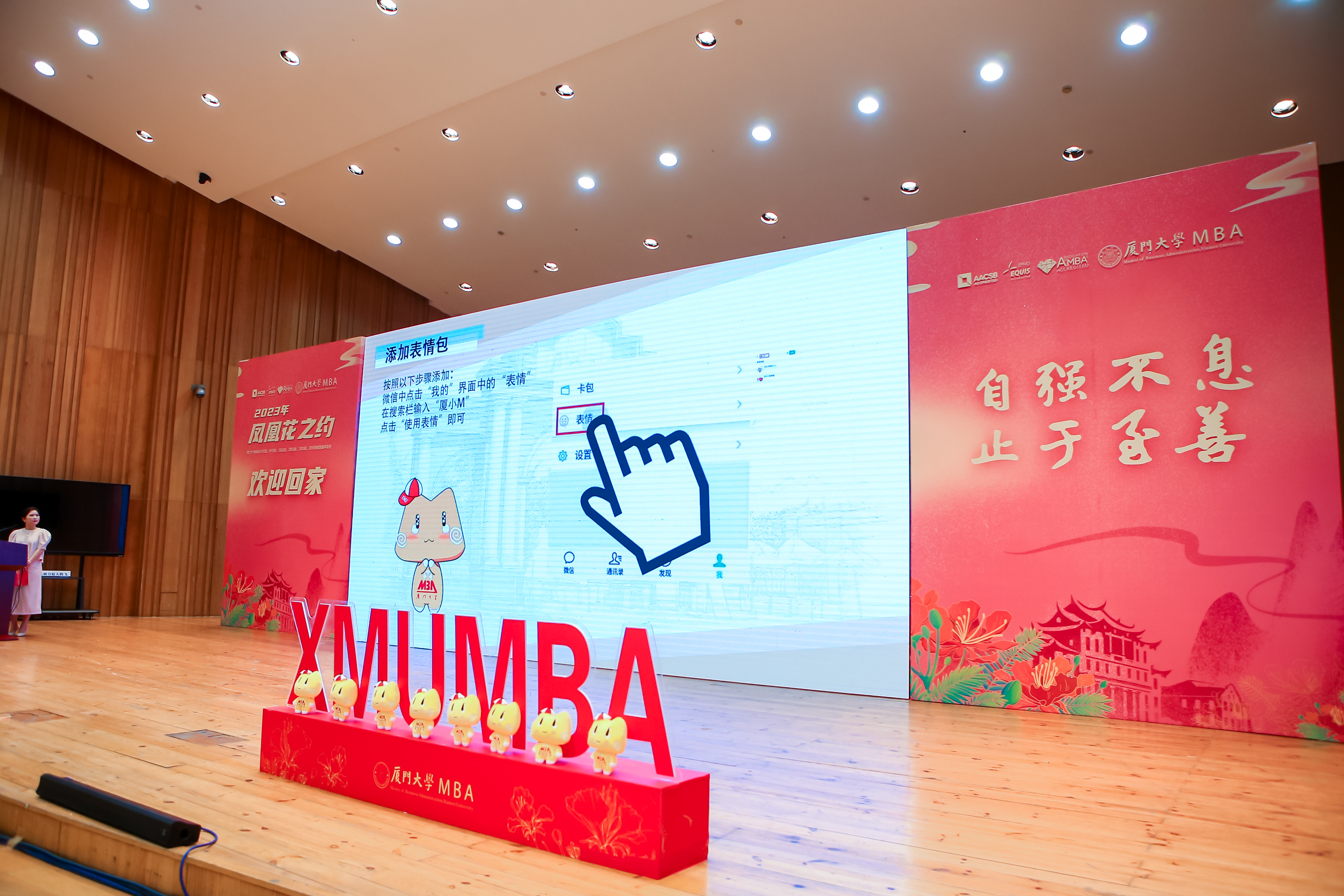 横跨30年的校友值年对话结束,会场掌声雷动,群情振奋。活泼可爱的吉祥物“厦小M”于此时出现在荧幕上,博得满座会心一笑。厦小M为校友带来校友小程序使用指南与板块介绍,希望借此更好地链接校友,凝聚MBA力量。