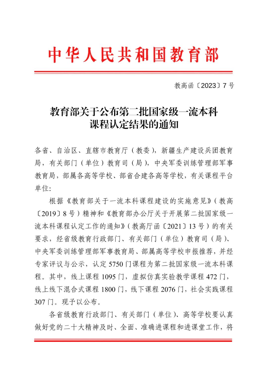 我院以习近平新时代中国特色社会主义思想为指导,落实立德树人根本任务,积极响应教育部《关于一流本科课程建设的实施意见》,深化教育教学改革,“淘汰水课”,“打造金课”,精心打造国家级、省级一流本科课程,全力推进信息技术、人工智能与教育教学的深度融合。加上首批获评的3门课程,已累计获批5门国家级一流本科课程。我院将以国家级一流课程建设为抓手,继续强化课程建设指导与激励,发挥国家一流课程的示范引领作用。