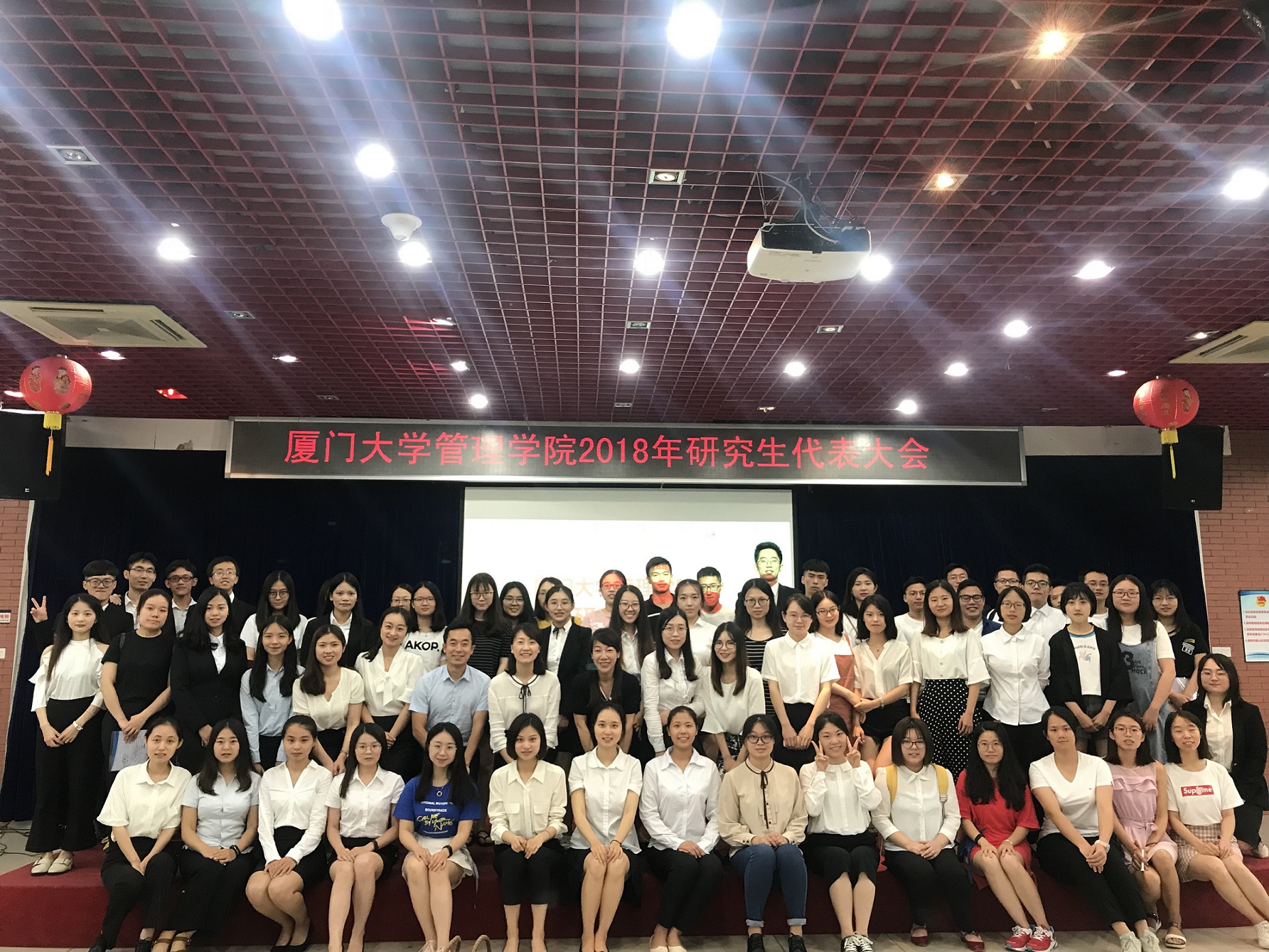 6月23日上午,厦门大学管理学院2018年研究生代表大会在厦门大学自钦楼二楼多功能厅召开。管理学院党委副书记洪秋霞、团委副书记周颖、辅导员揭上锋、刘晓宇以及全体研究生代表出席大会。