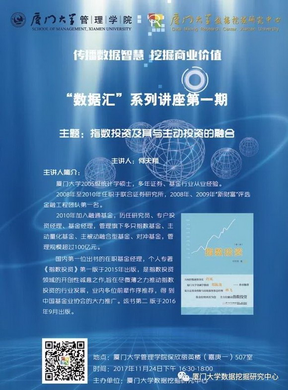 厦门大学数据挖掘中心|“数据汇”系列讲座第一期预告:指数投资及其与主动投资的融合
