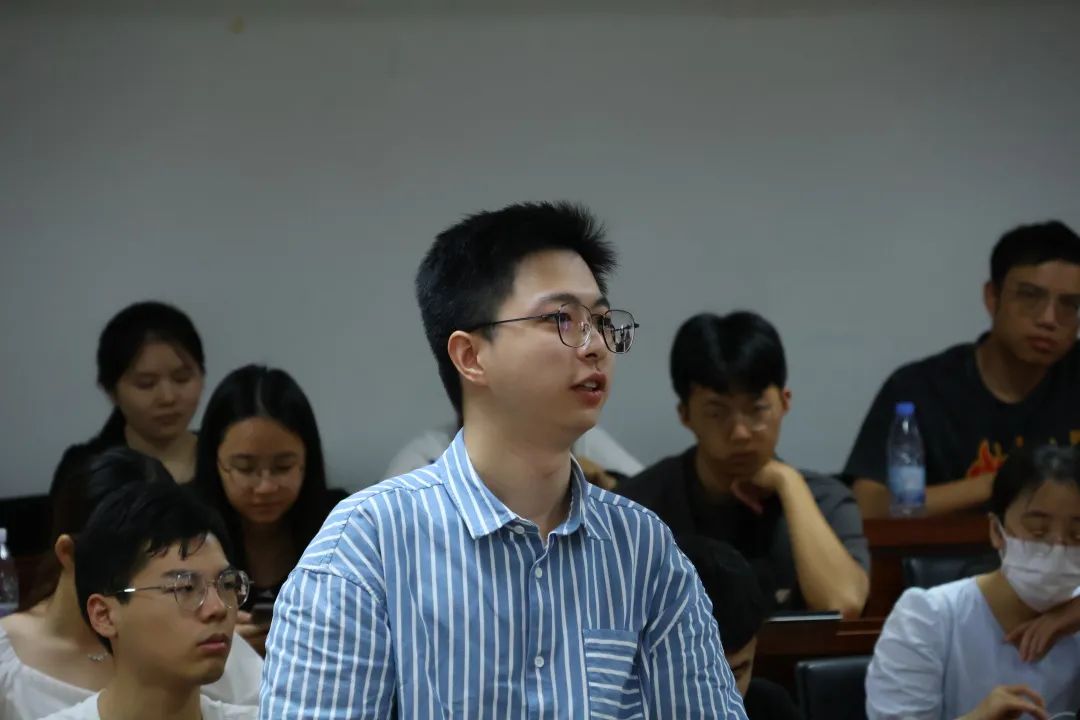 主题报告后,两位即将进入基层工作岗位的毕业生代表分享了自己的感悟。首先是硕士毕业生代表台英旭,他结合党的十八大以来全面从严治党的成效和他之前看过的“零容忍”纪录片,表明自己将在之后的工作中牢记这堂课,走得更好,走得更远;接下来本科毕业生代表雍清瑞,认为廉洁主要强调的是心态问题,要坚守好自己的底线。