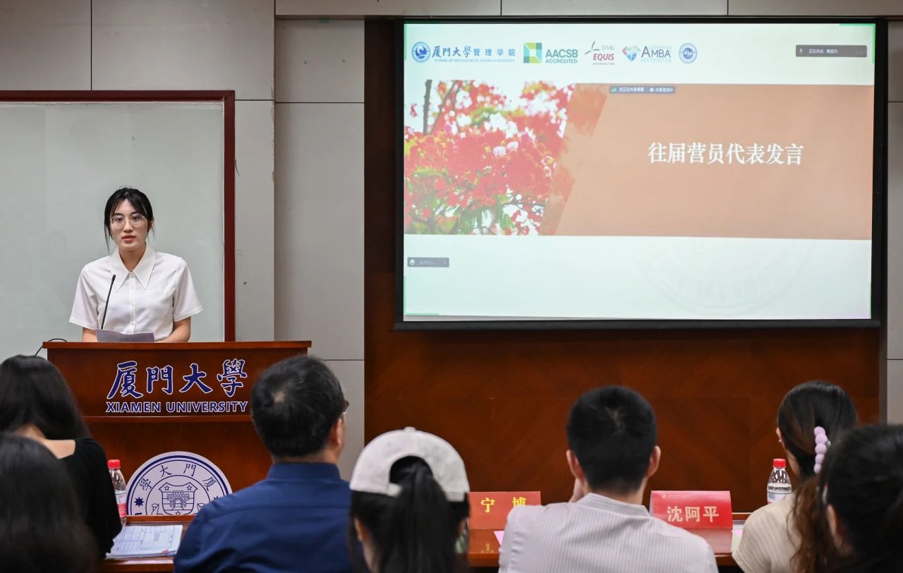 随后,往届优秀营员代表、管理学院2022级会计学硕士王笛同学进行分享。她向大家讲述了自己的参营经历以及近一年的学习收获,并祝福大家得偿所愿,九月再聚厦园。