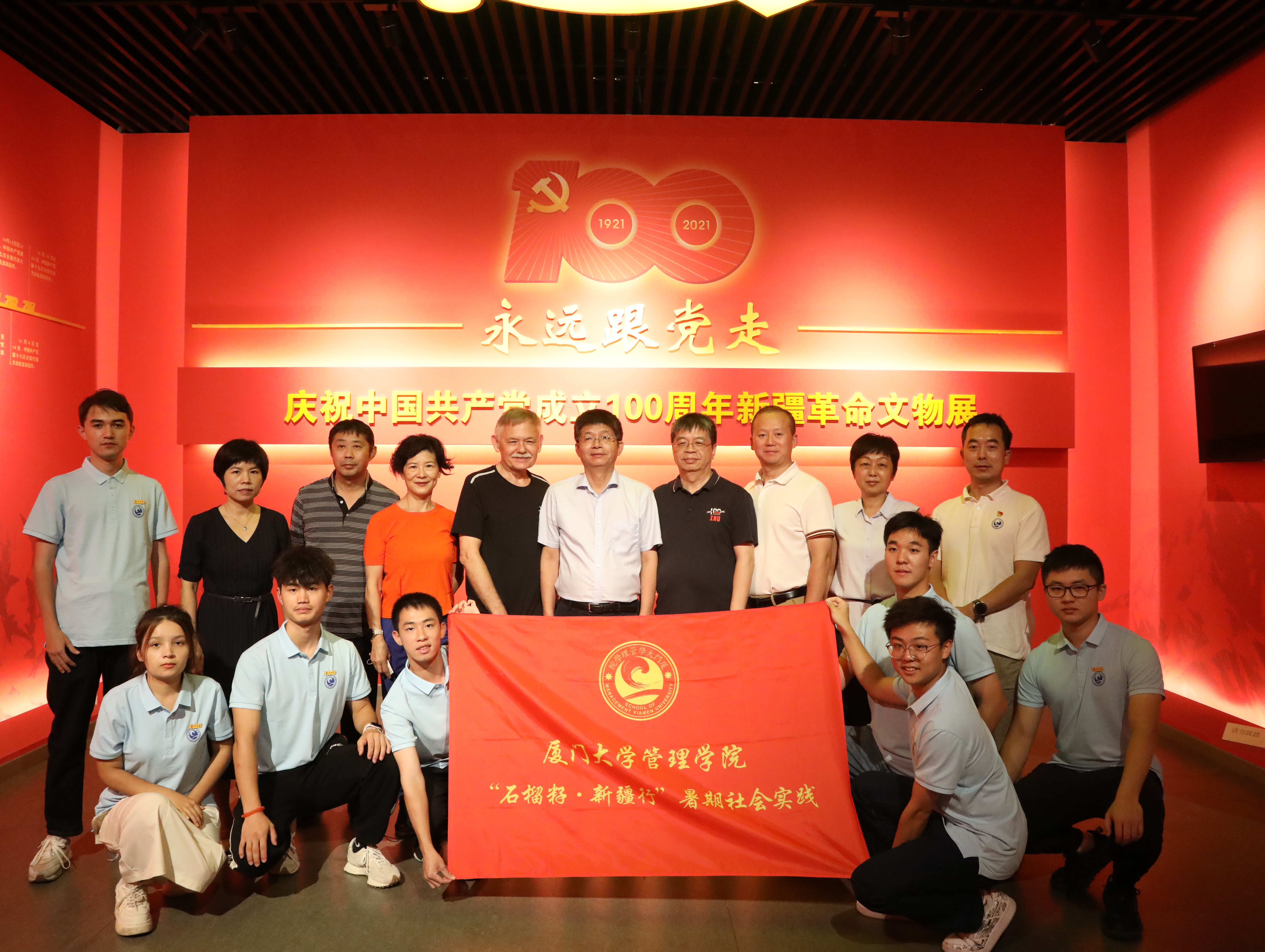 在校史馆,实践队师生了解到新疆大学和厦门大学一样具有光荣的革命传统。经过近百年的发展,新疆大学在著名共产党人俞秀松、林基路等一大批共产党人和进步人士的缔造下,已经成为传承红色基因的精神家园、培养兴疆固边人才的摇篮、引领区域创新发展的高地。