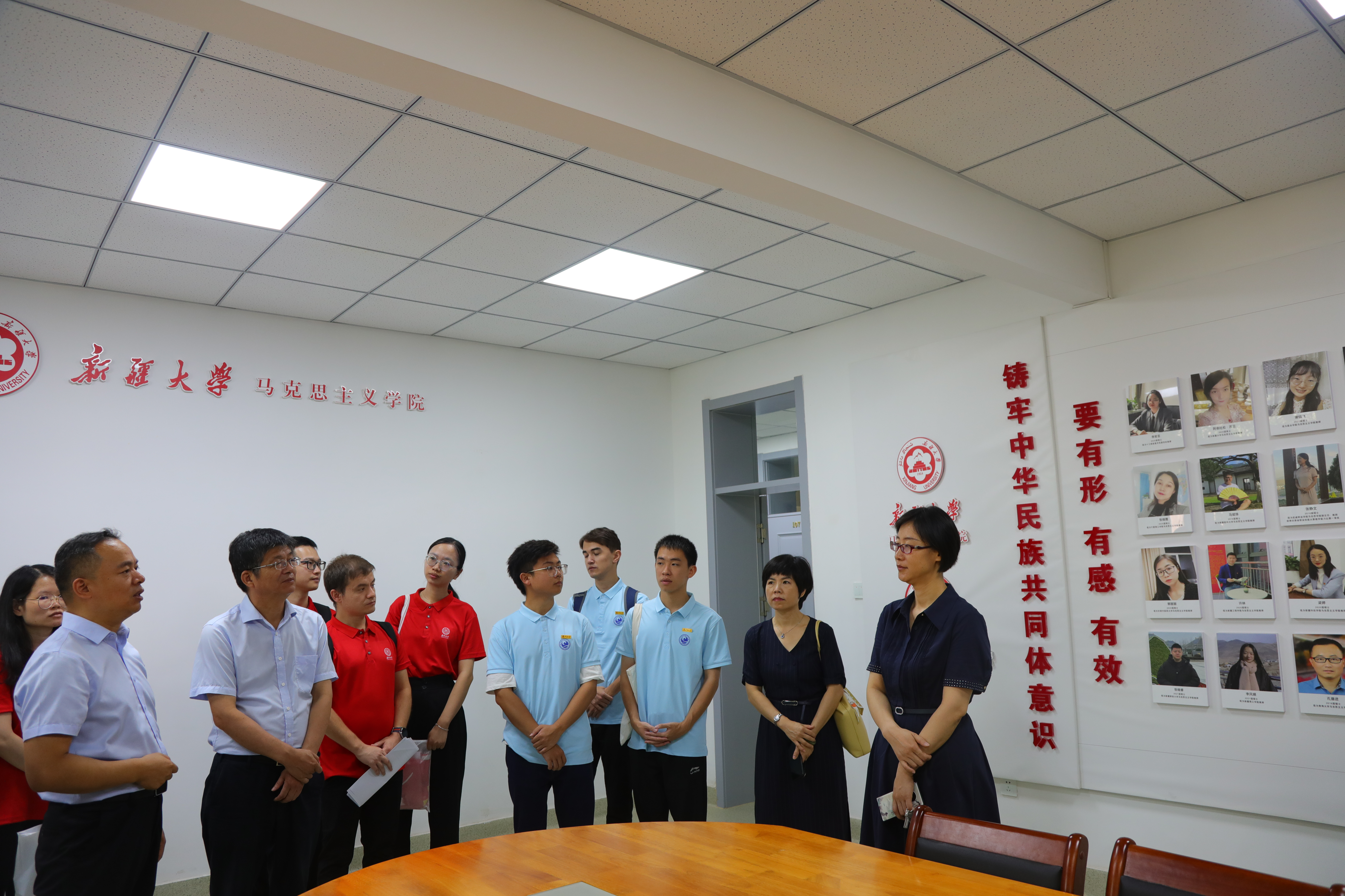 上午,徐进功一行先后到新疆大学校史馆、铸牢中华民族共同体意识研究基地看望正在这里学习、参观的校重点暑期社会实践队“石榴籽·新疆行”师生。