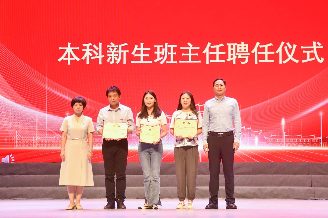 紧接着,吴超鹏和郑碧娇共同为本科新生班主任代表颁发聘书。