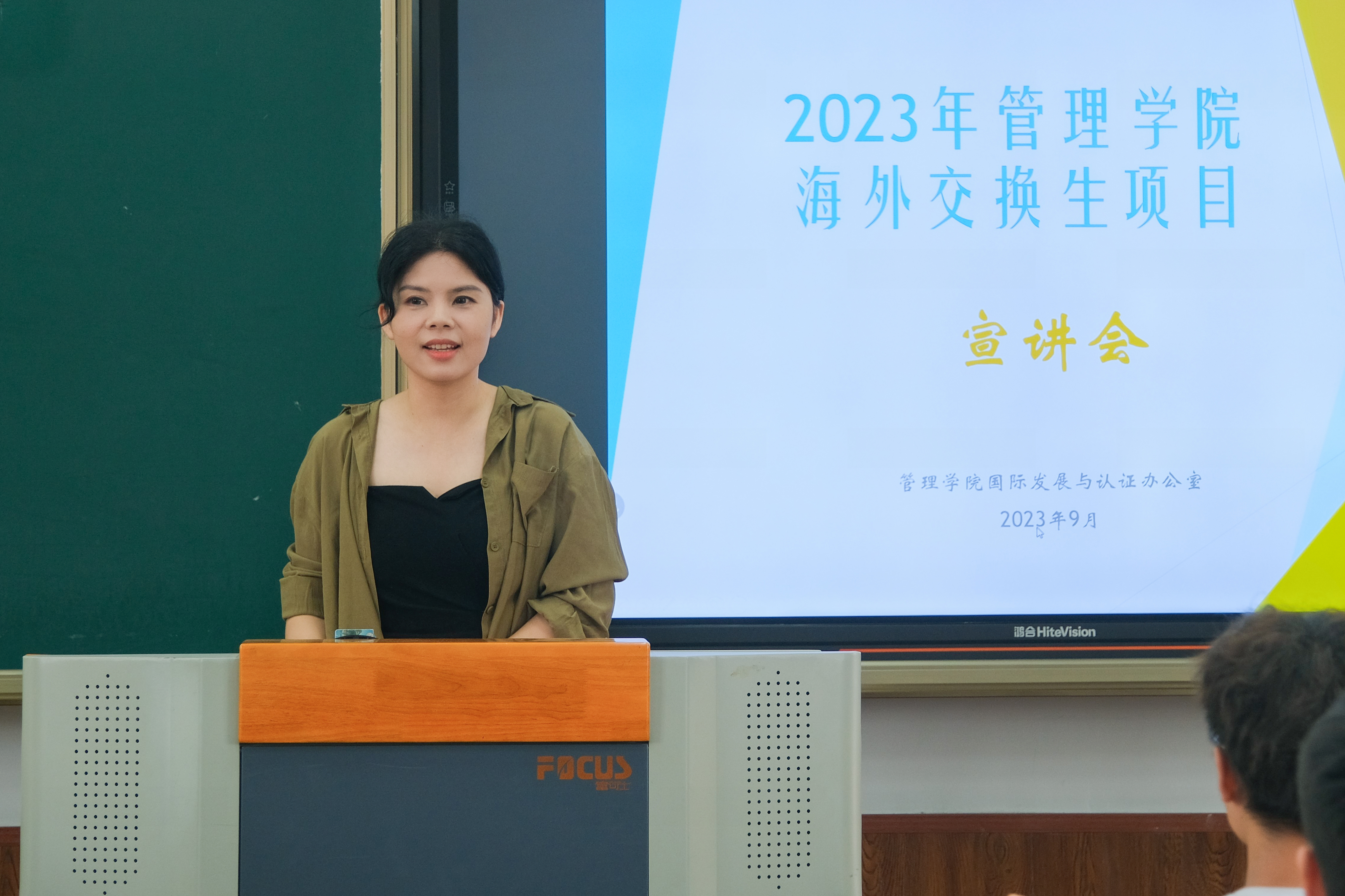 黄小明为同学们梳理了学院外事交流项目的整体脉络。她希望大家能够抓住机会,利用广阔的发展平台,借助国际交流培养模式,发掘自己无限的可能。