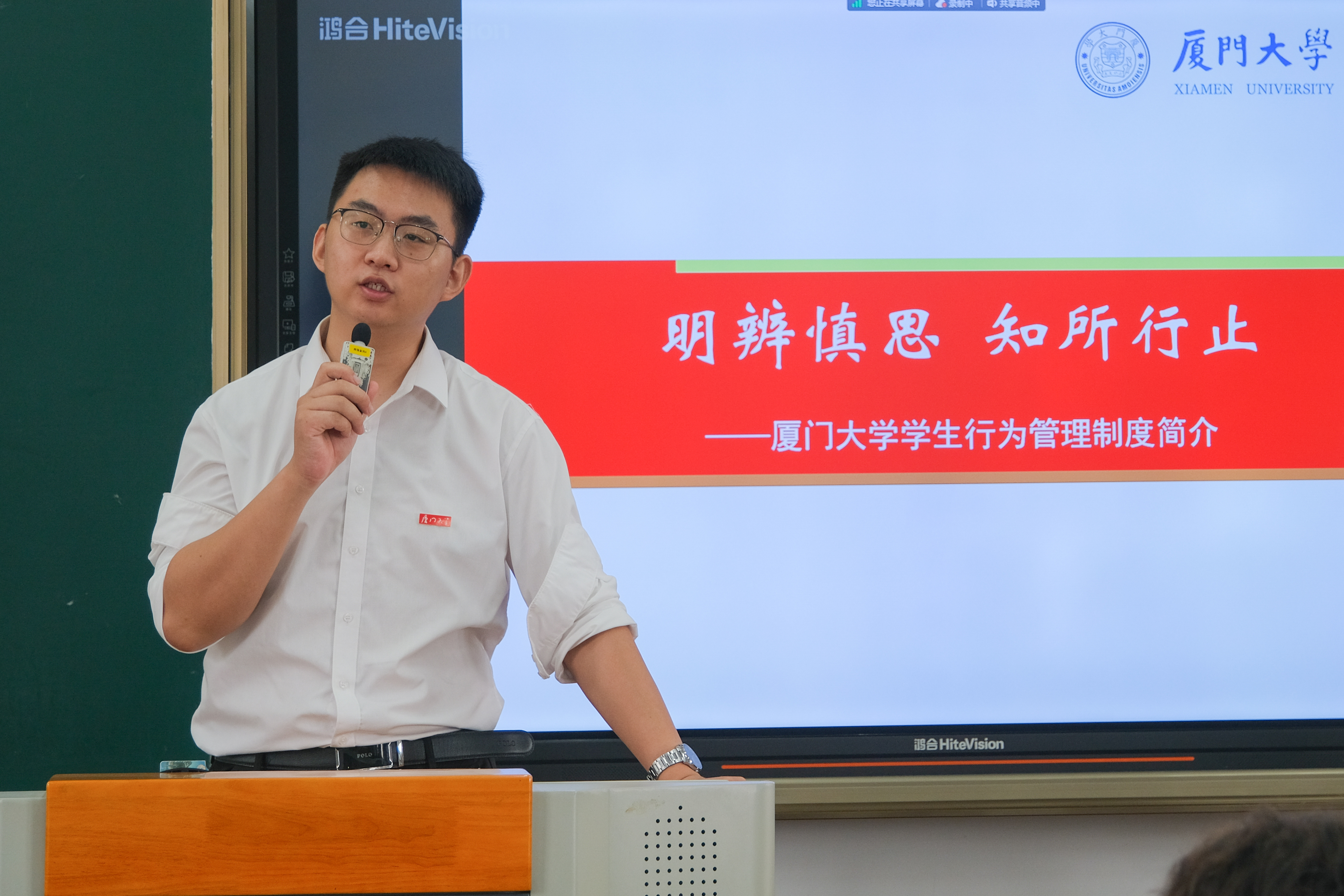 管理学院党委副书记郑碧娇,副院长白云涛,党委组织员周颖,本科生教学工作办公室副主任石云,校友与对外合作办公室副主任王燊,外事办秘书黄小明,辅导员赵梁杰出席,2023级全体本科新生参加活动。