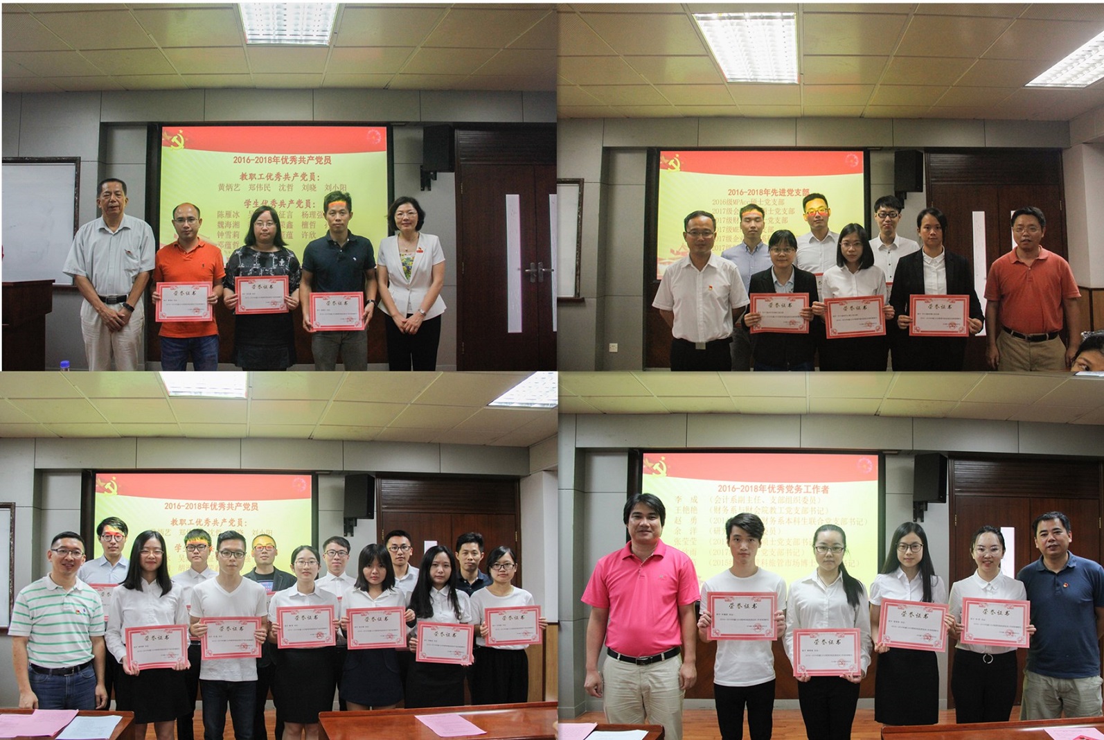 大会第三项议程由领导嘉宾为获表彰的集体及个人颁奖。首先是于李胜副院长和戴蓥副书记为先进党支部颁奖,先进党支部有2016级MPAcc硕士党支部、2017级会计学系硕士党支部、2017级ME硕士党支部、2017级企业管理系硕士党支部、2017级财务学系硕士党支部、接下来由陈雪玲书记、黄定基老师为优秀共产党员获奖教工代表黄炳艺、郑伟民、刘小阳颁奖,由白云涛副主任、黄炳艺副主任为陈雁冰等优秀共产党员获奖学生代表颁奖,最后由李冰洲副主任、黄兴孪老师为余洋、张莹莹等优秀党务工作者颁奖。 大会第四项议程由受表彰的先进集体和先进个人代表张青玉、张印轩同学发言。作为厦门大学2016-2018年先进基层党组织、15、16、17级工商类联合党支部书记张青玉在发言中以“构建刚性约束力的党建标准体系”、“创新具有时代吸引力的党员教育模式”和“打造具有头雁影响力的党员服务平台”为主线,全面汇报了党支部自成立以来,在党员约束、教育和服务管理方面做出的突出成果。厦门大学优秀共产党员、2016级企管硕士党支部党员张印轩在发言中,以“旗帜”、“责任”、“梦想”为关键词,分享了个人在管理学院两年的求学时光中的成长历程,他表示,作为青年学子,要“勇担时代使命,建功新时代;奋力追逐梦想,共圆中国梦”。
