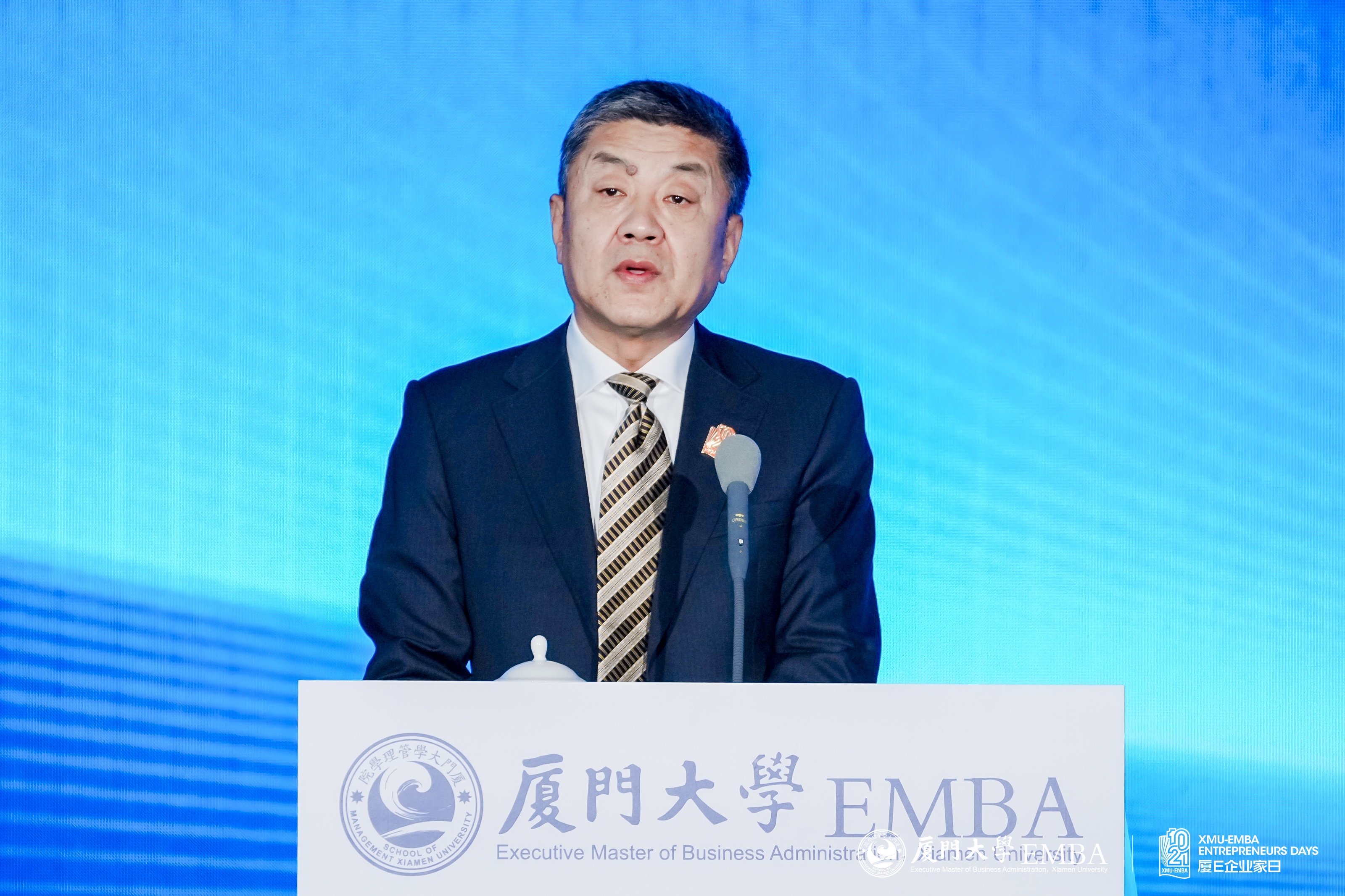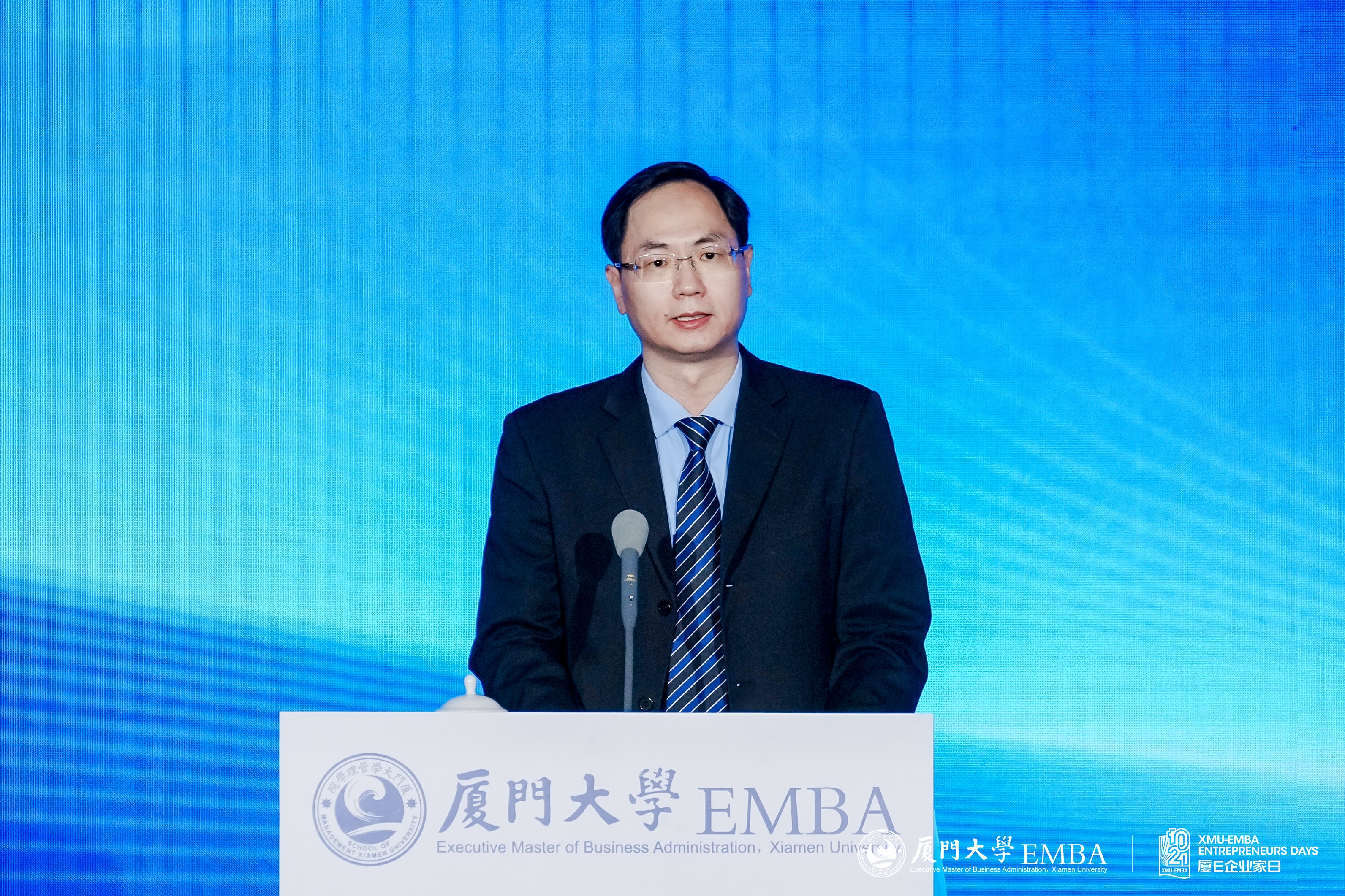 李常青主任在致辞中盛赞和感谢2021级同学们的认真求学、对母校的支持热爱,特别是承办首届厦E企业家日活动。