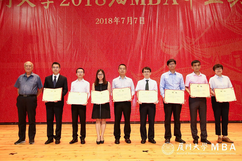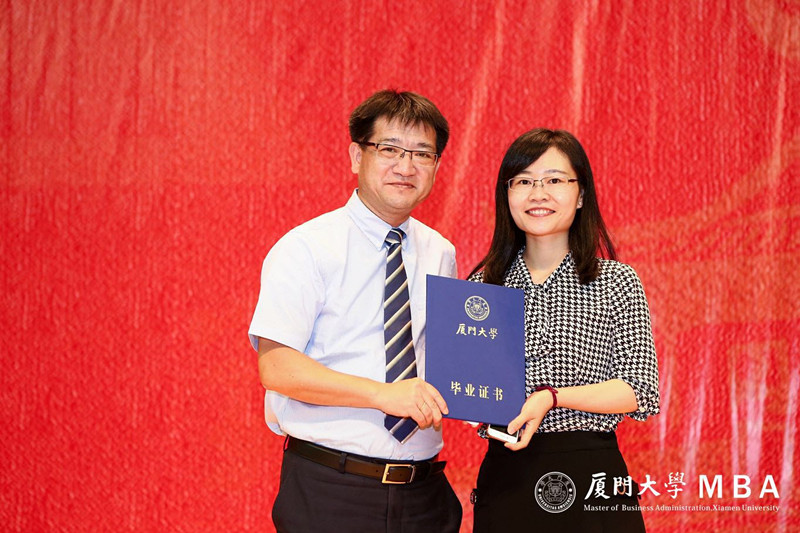 获得2018届“最佳增值奖”的是2015级3班的魏鹭冰同学,入读MBA后,先后在新华都、柒牌、九牧任职,并完成了从财务管控到项目投资管理的转化。凭借其出色的业绩表现,在工作平台和职业发展上实现了较大的跨越。魏鹭冰所在九牧厨卫股份有限公司的财务副总裁杨舒羽女士也特地出席本次毕业典礼并为她颁奖。