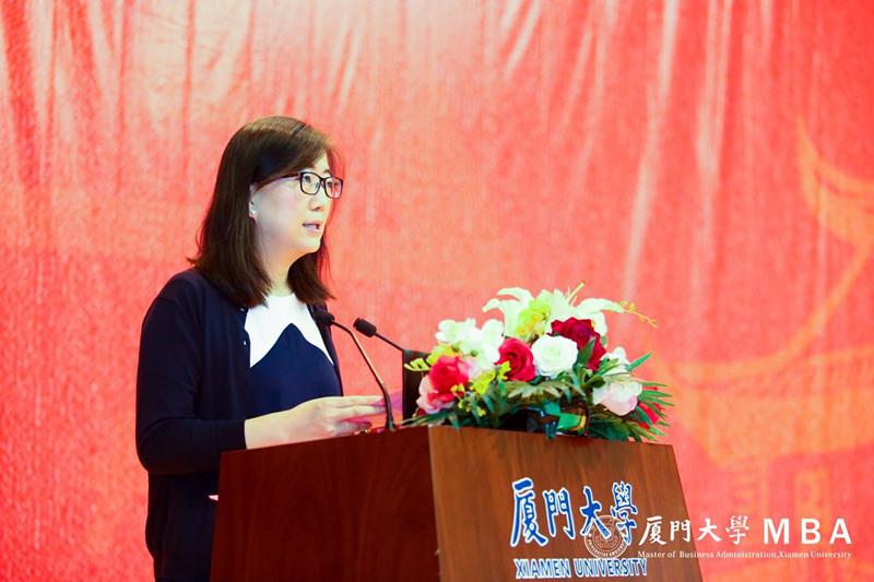 厦门大学管理学院院长叶建明教授致辞,他认为同学们的刻苦求学,奋发向上精神,特别是在职班面对繁重工作、家庭压力的同时,仍坚持学习积极参与活动的态度与毅力,是厦大校训“自强不息,止于至善”的真实写照。他也希望同学们在毕业离别母校后,依然能记得厦大MBA精神,持续培养自身的竞争力、自信心、创造力、合作、诚信精神和领导力。希望同学们能再聚芙蓉湖畔。