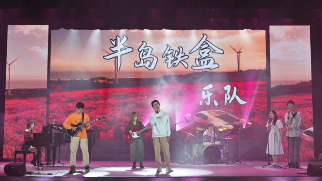 伴随着《花海》的优美旋律,晚会正式进入第一篇章——“满‘新’欢喜”。首先出场的半岛铁盒乐队在温情优美与向上昂扬间灵活切换曲风,演绎了一首首华语金曲,带领我们沉浸在青春的美好与昂扬之中。