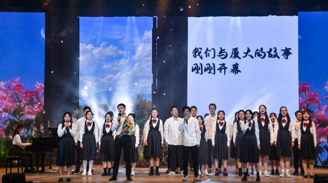 伴着一声声明快跃动的吉他,本科2023级八班新生和辅导员赵梁杰共同为大家带来了合唱《晴天》,抒情的歌词,青涩的嗓音,同学与老师的倾力合作,赢得了观众们的阵阵掌声,热烈而自由,赤诚且勇敢,愿厦园的日子皆是晴天。
