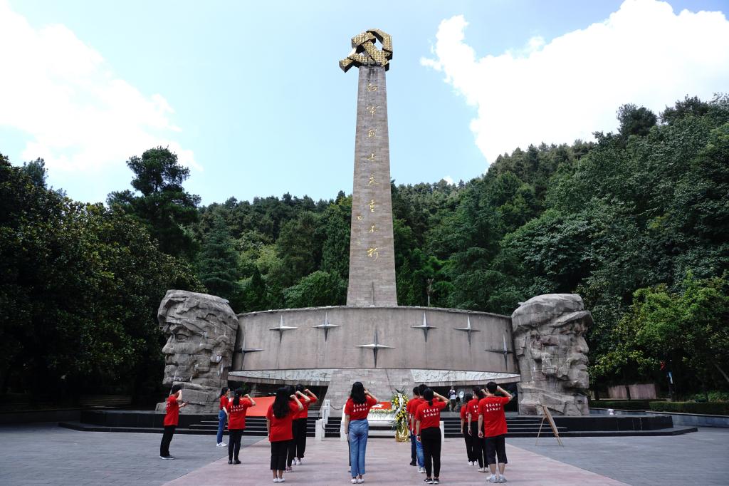 在此次实践过程中,实践队组建临时党支部,将党员信仰体现在实践全程中,将“不忘初心、牢记使命”根植在师生心间里。在红军山红军革命烈士纪念碑前,全体师生为红军烈士敬献花篮并重温入党誓词,学习革命先烈坚定理想信念、勇于牺牲的崇高品质,“我志愿加入中国共产党”……洪亮的入党誓词飘扬在烈士纪念碑前,使师生党员时刻铭记入党初心;在遵义会议纪念馆中,党员师生自觉学习习近平总书记系列重要讲话精神,保持家国情怀,坚定为国理想。实践队全体师生在云贵高原吹响了“两学一做”常态化制度化的号角。