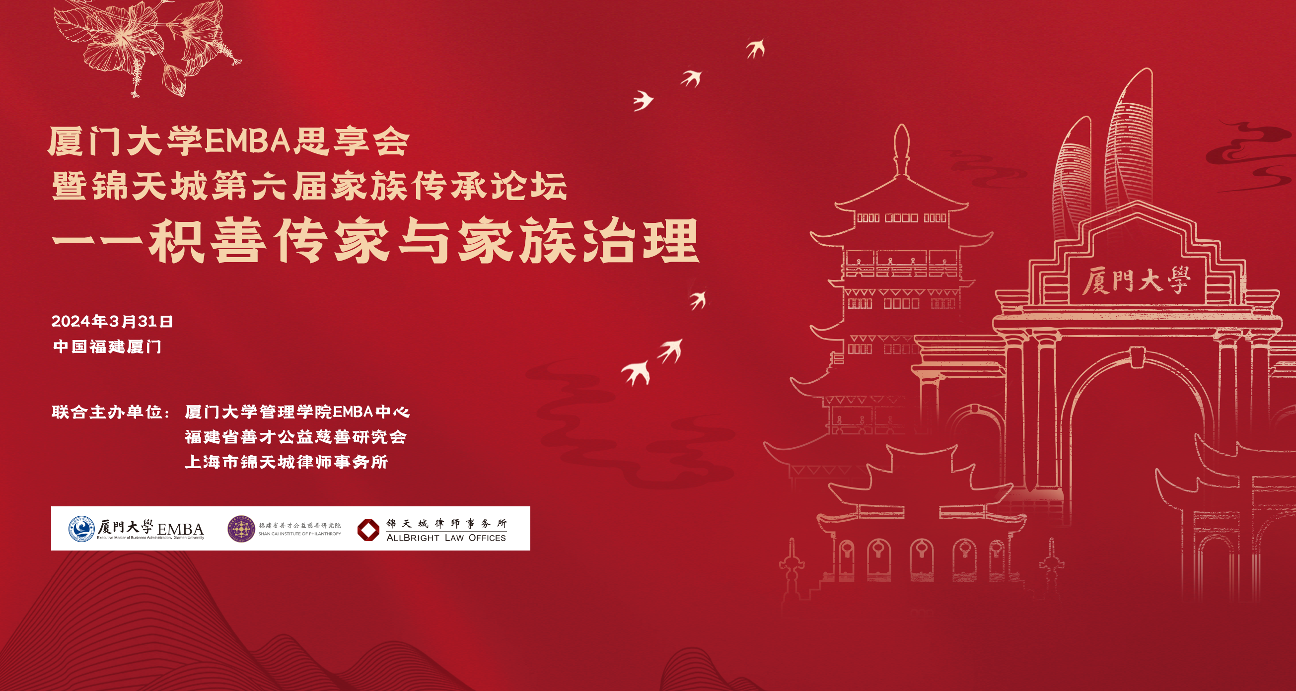 今年是著名爱国侨领、厦门大学校主陈嘉庚先生诞辰150周年。3月31日,厦门大学EMBA思享会·家族传承论坛在厦大举办,线下逾200名及线上近万名业内学者、厦大EMBA学员、公益组织代表、家族企业代表、法律专家等相聚一堂,以陈嘉庚先生的家族传承为榜样,结合闽商案例与环球视野,共同探讨根植中华文化传统、面向未来、基业长青的积善家族传承。