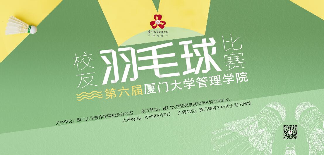 大家好!欢迎大家跟随我一起回顾由厦门大学管理学院校友办公室主办,EMBA羽毛球协会承办的“第六届厦门大学管理学院校友羽毛球赛”!我是当日的现场记者,下面将由我为大家带来当天比赛的精彩瞬间!