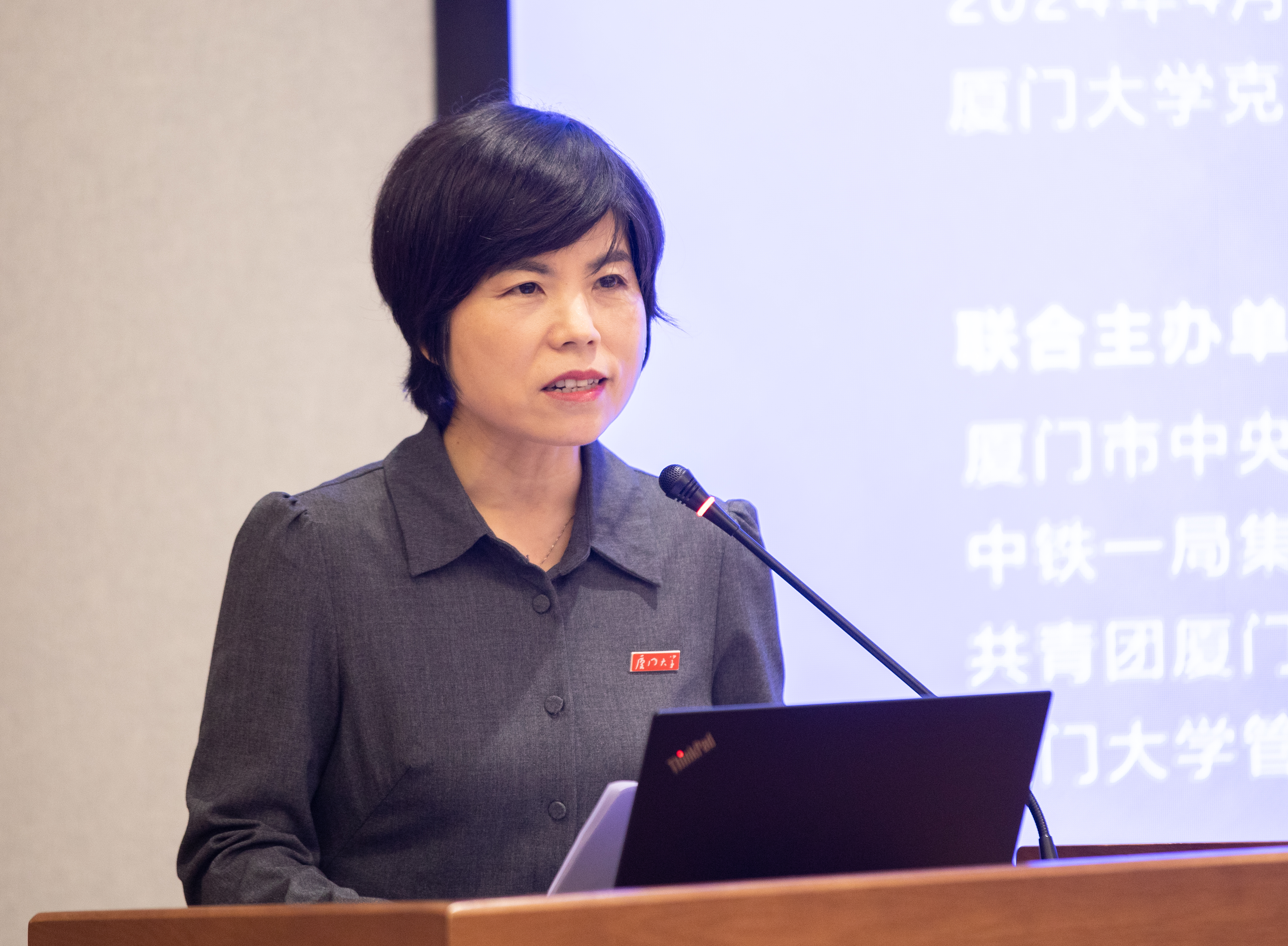 郑碧娇在开场主持中提到,举办校企共建文化大讲堂旨在促进厦门大学与央企先进文化的交流融通,共同培育高素质人才,共同筑牢文化自信的根基,促进青年学生和企业员工在文化滋养中收获奋进力量。厦门大学管理学院坚持立德树人、以德育为先,培养了一批批高素质专业化人才,为众多企事业单位提供了坚实的人才队伍支撑。学院通过在职研究生教育、高端培训、课题研究等方式深入开展社会服务,为国家深入实施新时代人才强国战略、加快建设世界重要人才中心和创新高地贡献了重要力量。希望本次活动能够进一步推动校企多方面的交流合作。