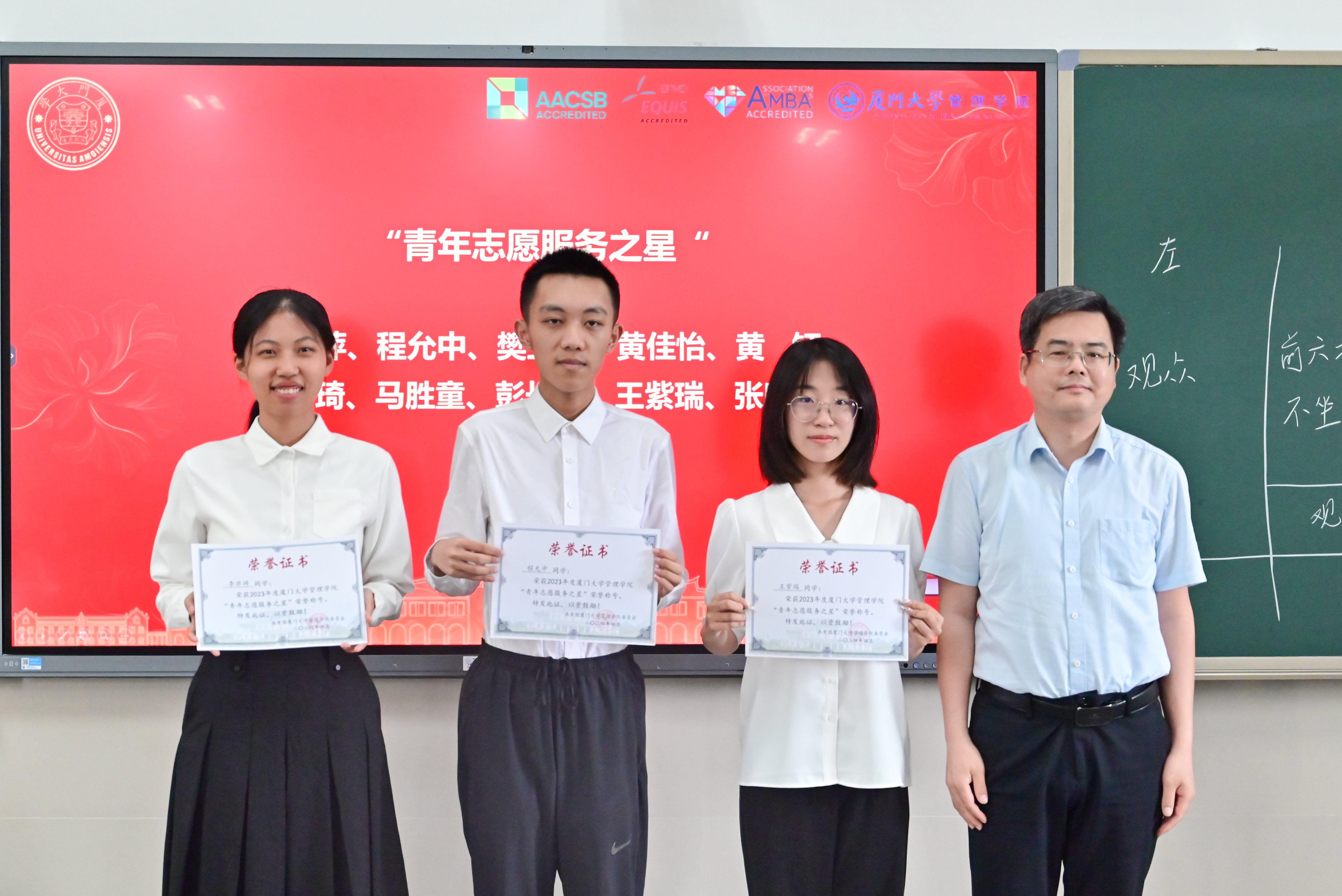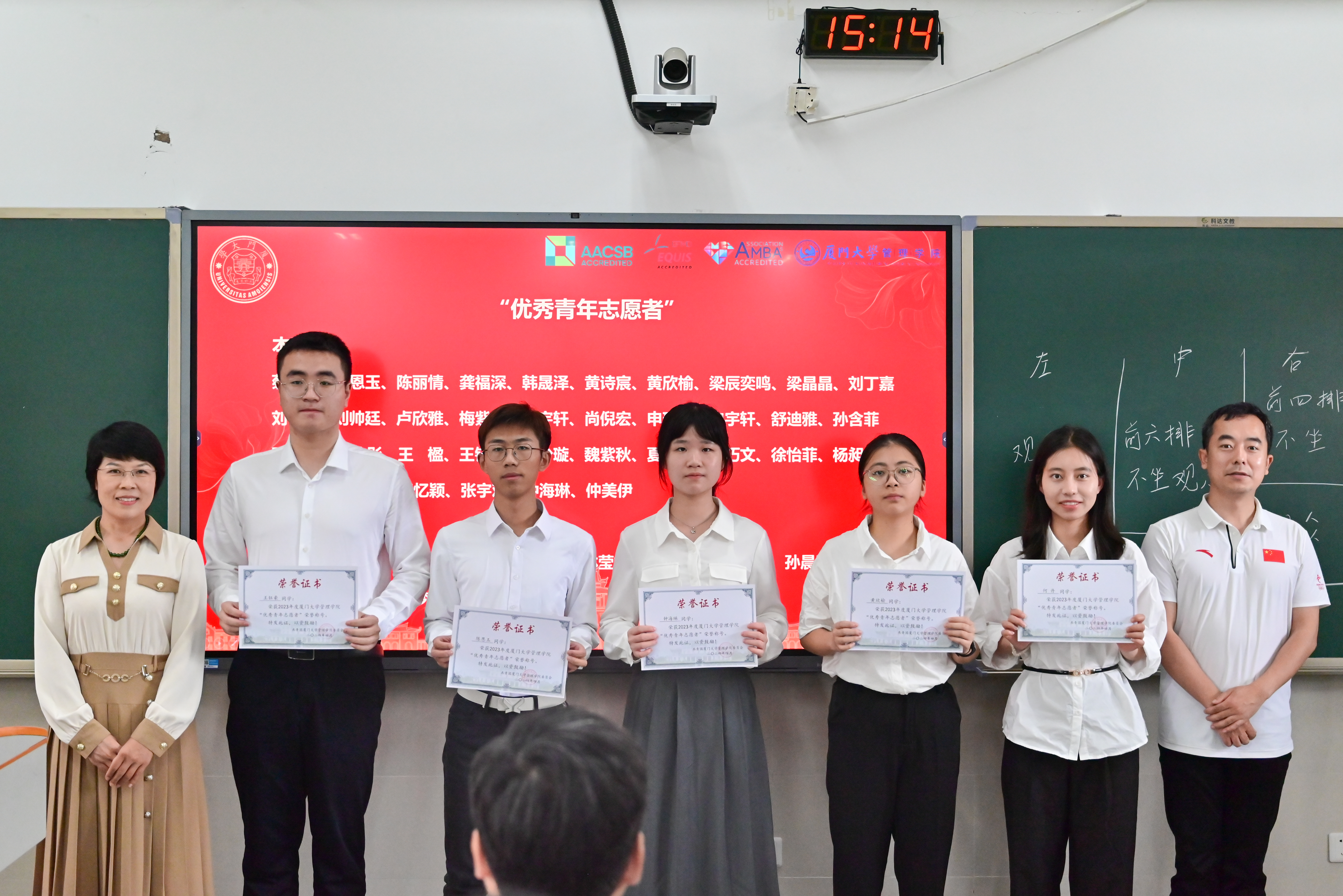 为更好地开展新时代志愿服务,传承新时代雷锋精神,激励青年大学生自觉服务祖国、奉献社会,在志愿服务的过程中实现人生价值,5月7日,管理学院2023年志愿服务先进个人表彰大会暨“青年志愿服务之星”风采展示在南强二301举行。管理学院党委副书记周民钦,团委书记蒋超杰,团委副书记揭上锋、黄劲夫,辅导员曹惠真、刘颖、谢宇崧出席此次活动。大会由2022级本科生卢欣雅主持。