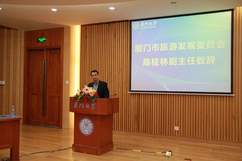 厦门市旅发委副主任陈桂林在致辞中表示,旅游文创已成为旅游目的地在观光之外,与休闲度假产品相配套的重要盈利点之一。厦门市的旅游资源丰富且具独特性,打造厦门市经典旅游纪念品,是推动旅游产业创新发展的重要方向。他表示,期待在今天的比赛中,各参赛团队通过对旅游纪念品的创意展示,为在场师生及企业代表带来有感染力和市场力的旅游文创产品,为厦门市旅游发展增添新的亮点,注入新的活力。
