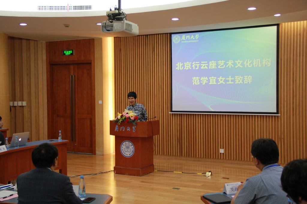 北京行云座艺术文化机构范学宜代表大赛发起方对全国首届大学生旅游纪念品大赛主办方和组委会表示深深的谢意和对进入决赛的参赛队伍表示祝贺。作为大赛的发起方和过程的参与者,范学宜表示,本次比赛参赛作品形式新、创意佳,文案充满了美学和艺术感,相信全国大学生旅游纪念品创意大赛能够借力于厦门大学雄厚的学科实力,从厦门这座美丽的海上花园城市起航。