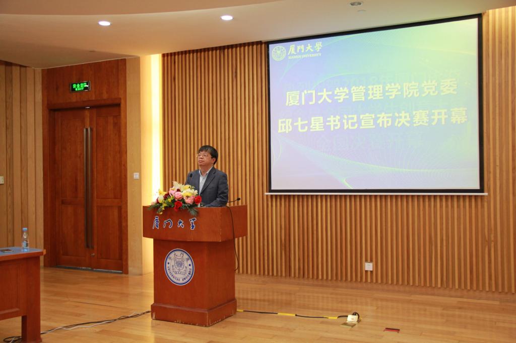 管理学院党委书记邱七星宣布厦门旅游纪念品全国大学生创意大赛全国决赛开幕。