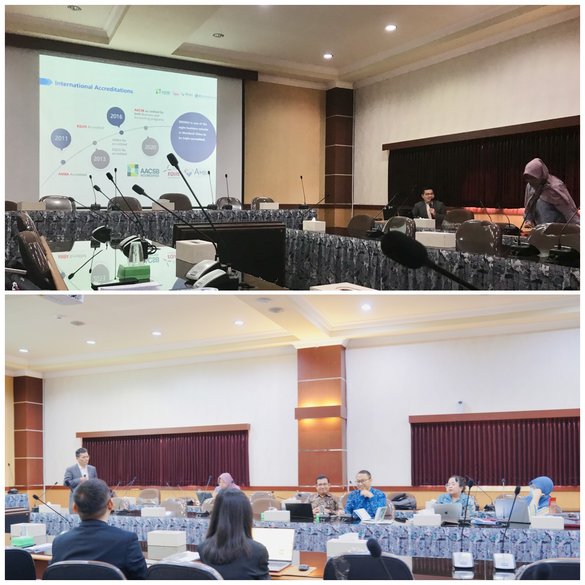 随后,艾尔朗加大学经管学院院领导会见了我院代表团,举行了国际战略合作洽谈会。该院院长Dian Agustia教授、校国际事务处主任、三位行政副院长团队亲切接待我院代表团。该院国际事务、学术科研、教学与学生事务等相关负责人先后与代表团进行深入交流。