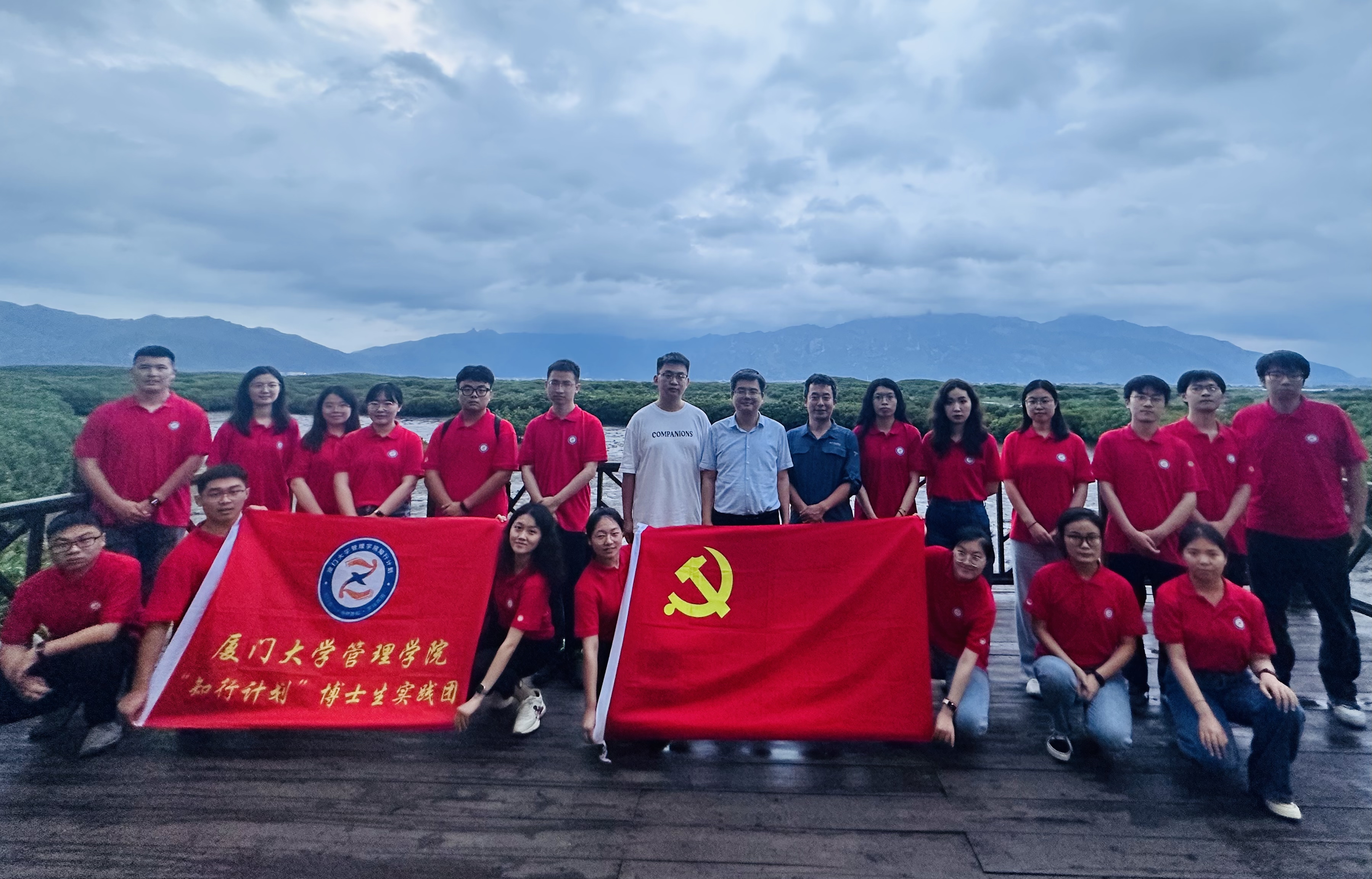 为深入学习贯彻习近平生态文明思想,不断提高对生态文明建设的认识和理解,6月15日下午,管理学院财务学系博士生党支部牵头组织的“知行计划”博士生实践团和环境与生态学院漳江口红树林湿地生态系统福建省野外科学观测研究站党支部(以下简称“红树林党支部”)展开联学共建活动。环境与生态学院党委副书记刘莉颖、红树林党支部副书记张雅棉、环境与生态学院助理工程师赵小雨,管理学院党委副书记周民钦、管理学院团委副书记揭上锋、辅导员赵梁杰以及20名学生党员参加本次活动。