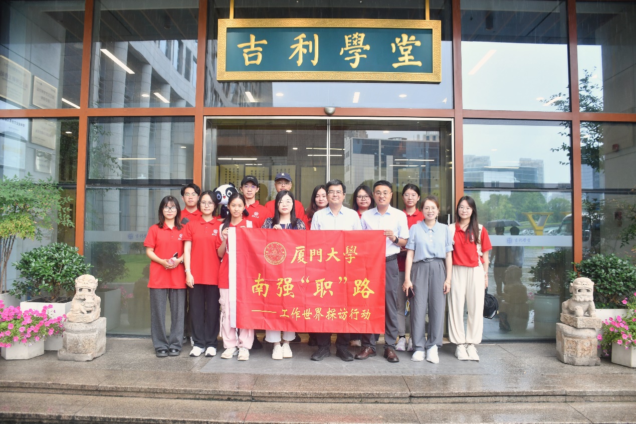 为开阔学子视野、丰富学子职场认知,强化校企人才合作、畅通人才输送渠道,推动学生更加充分更高质量就业,管理学院积极开展“南强‘职’路——工作世界探访行动”。6月25-26日,由管理学院党委副书记周民钦、市场学系副主任陈瑞副教授、旅游与酒店管理系行政秘书陈菲带领,12名学生组成的社会实践队前往杭州,先后走进物产中大国际贸易集团有限公司和吉利控股集团有限公司,进行深入的参访和交流。