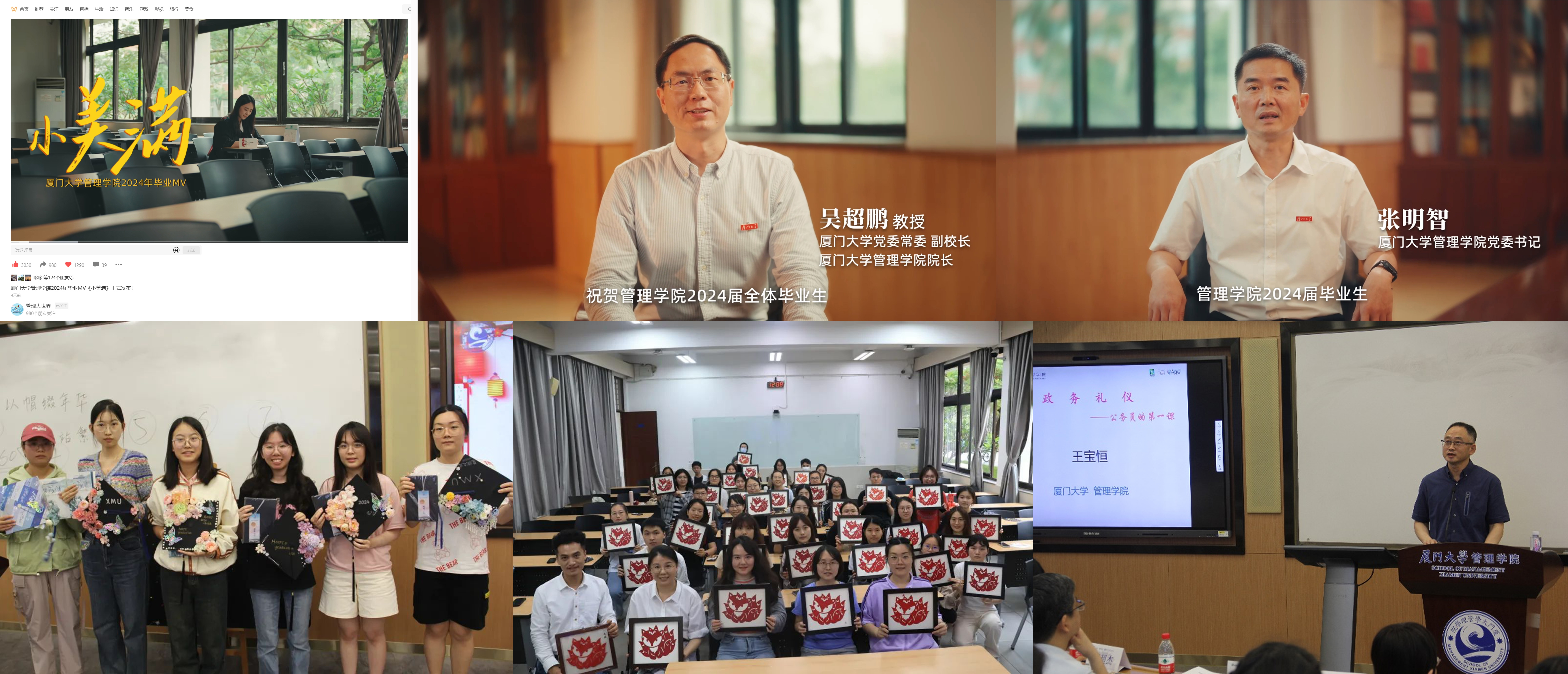 弘扬优良学风、鼓励勤学钻研,一批品学兼优的毕业生获评“安踏奖学金”“常勋奖学金”等院级奖学金。毕业生在“高尔夫挥杆赛”“夏日飞盘体验”等体育赛事中“解锁”职场人新潮休闲运动,与同窗室友并肩作战,强化终身锻炼的意识。“毕业晚会”节目由毕业生自编自导自演,展现出新时代学子爱国爱校、扎实奋斗、活力无限的青春风貌。一年一度的“龙卷风”草地音乐节唱响对青春的赞歌和对生活的热爱,向全体毕业生送上最深情的祝福。精心策划出品毕业MV,让毕业生们参与歌词改编、脚本创意、视频录制等工作,邀请学院党委书记、院长和师生代表出镜拍摄,学生对母校的眷恋、老师们对学生的祝福跃然于音符之上,情意绵绵流动在字里行间。在“毕业帽DIY”“剪纸中的人生智慧”等美育活动的熏陶下,学子表达真挚深厚的师生情、母校情、家国情。明确文明离校的劳动要求,组织毕业生动手打扫寝室、整理个人物品,清理宿舍每处角落……通过德育铸魂、智育固本、体育强身、美育浸润、劳育淬炼,充实毕业生离校前的精彩校园生活和珍贵回忆,让厦大优良校风涵养于管院学子心间,让关怀与爱伴随他们踏上人生征程。