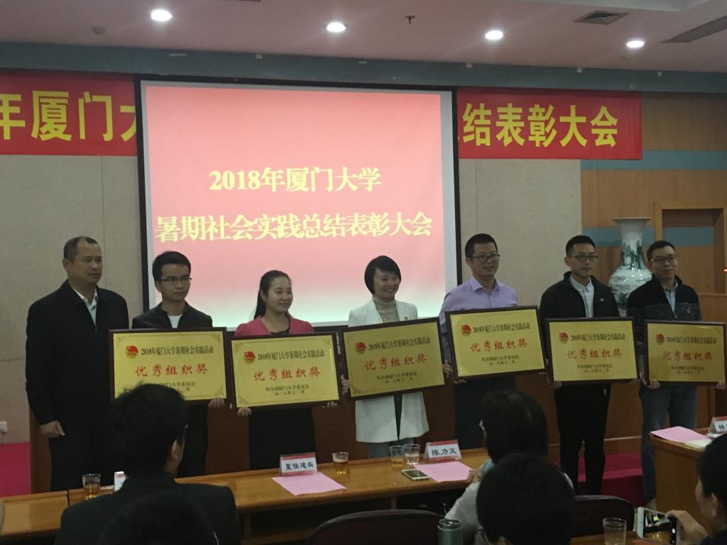 在此次总结表彰中,管理学院获得2018年厦门大学暑期社会实践活动优秀组织奖,企业管理系2017级硕士生吴欣睿代表我院“学习之路”实践团作主题经验分享。与此同时,学院涌现一批团队及个人获得国家、省级、校级多项荣誉。