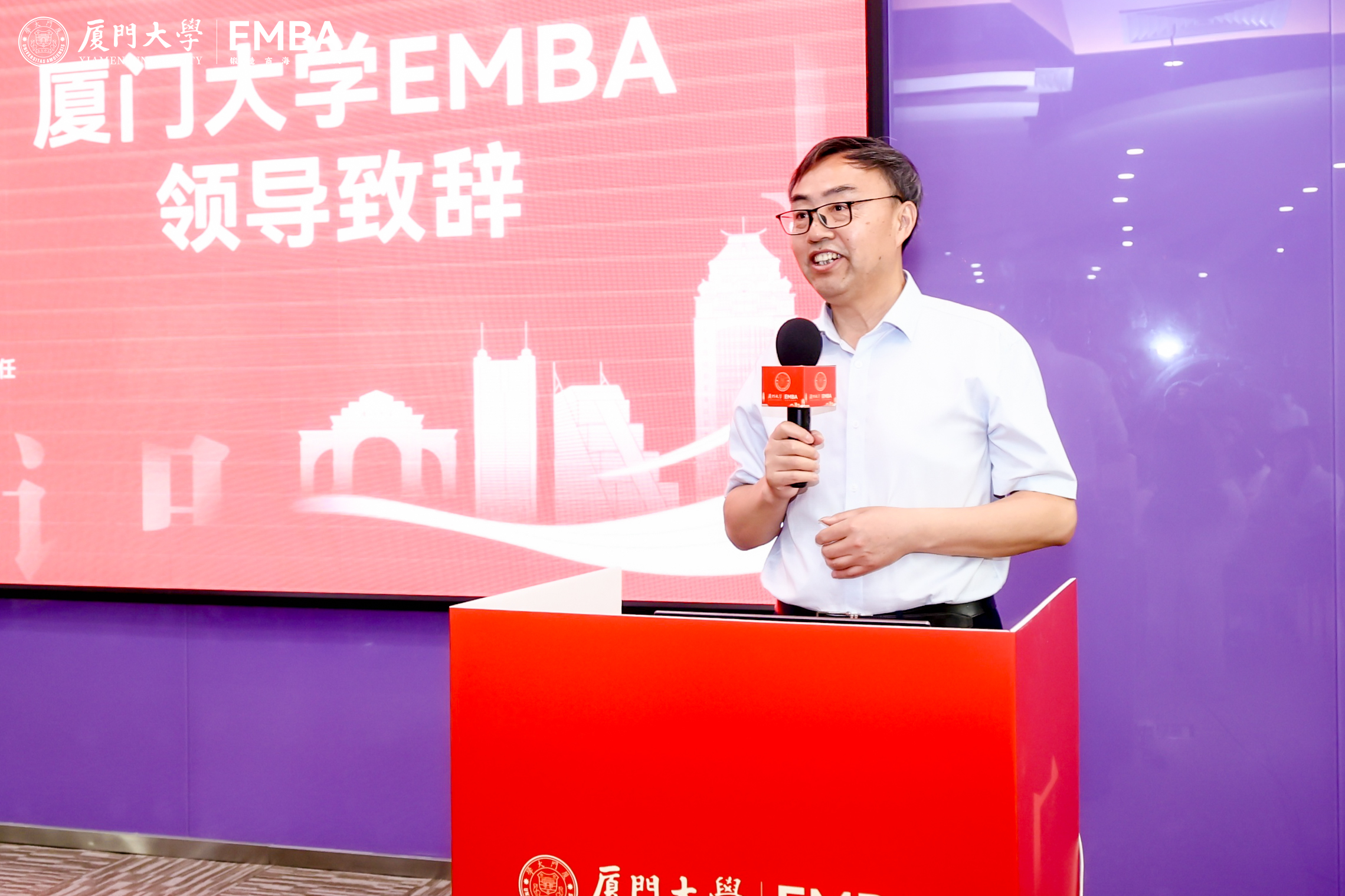 张明智为新生们上思政第一课。他向各位新生提出四点殷切希望:一是坚定信念,涵养国家情怀,传承和弘扬厦大“爱国、革命、自强、科学”的优良校风,为实现中国式现代化贡献更大力量;二是勇于创新,引领时代潮流,作为EMBA新生,应当勇于拥抱变革,敢于突破传统,用创新的思维和方法推动企业转型升级;三是弘扬嘉庚精神,践行社会责任,以校主嘉庚先生为榜样,赢得社会的尊重与认可,实现企业的可持续发展;四是终身学习,提升自我修养,将自己锤炼成为既懂经营之道、又具人文情怀的复合型人才。张明智的寄语饱含深情与希冀,得到了在座各位新生们的热烈反响。