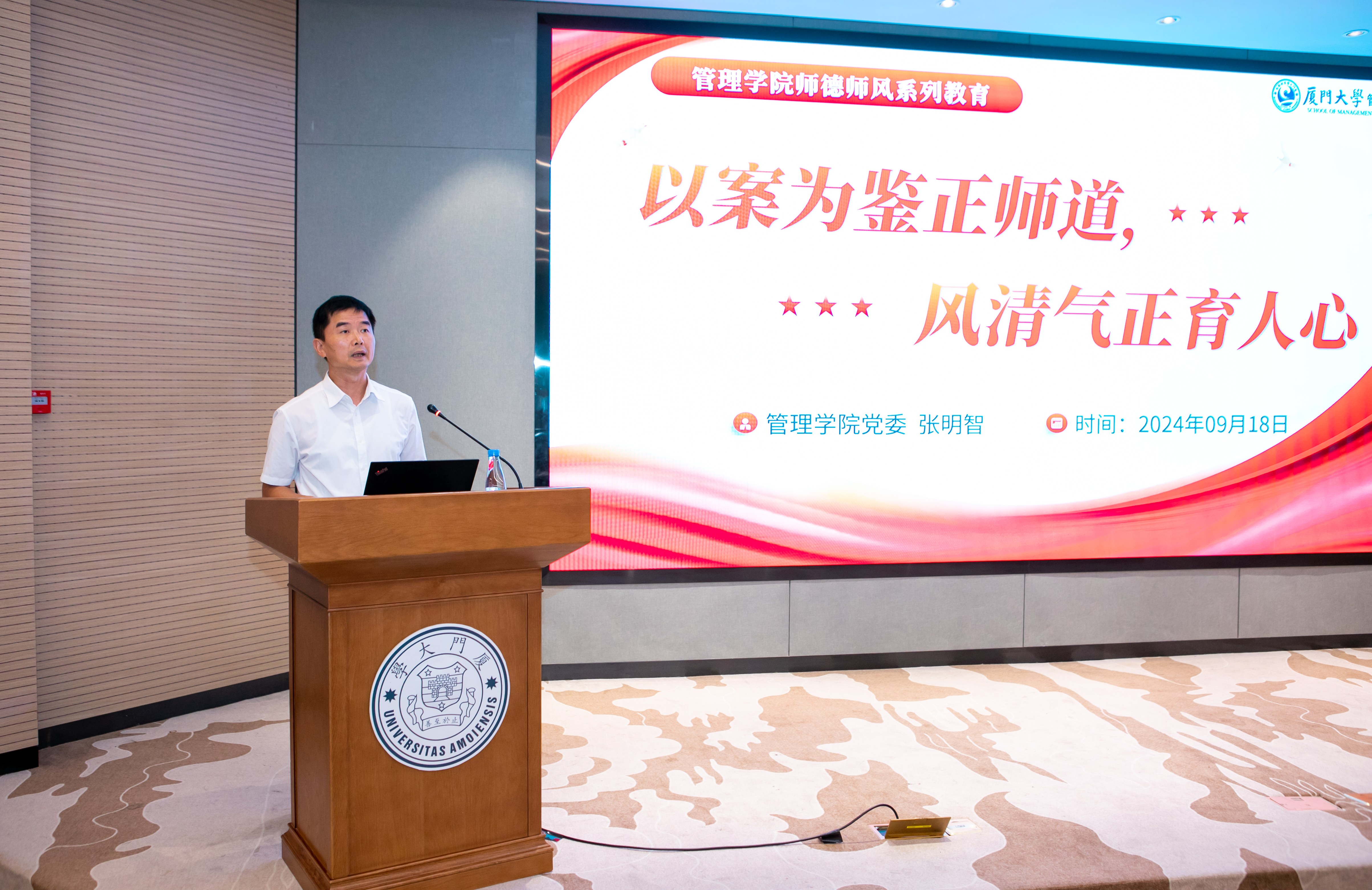 9月18日下午,管理学院2024年秋季学期工作布置会在克立楼三楼报告厅召开。厦门大学党委常委、副校长、管理学院院长吴超鹏,厦门大学党委原常务副书记、管理学院原院长李建发,学院党政领导班子成员及全院教职工参加大会。会议由管理学院党委书记张明智主持。