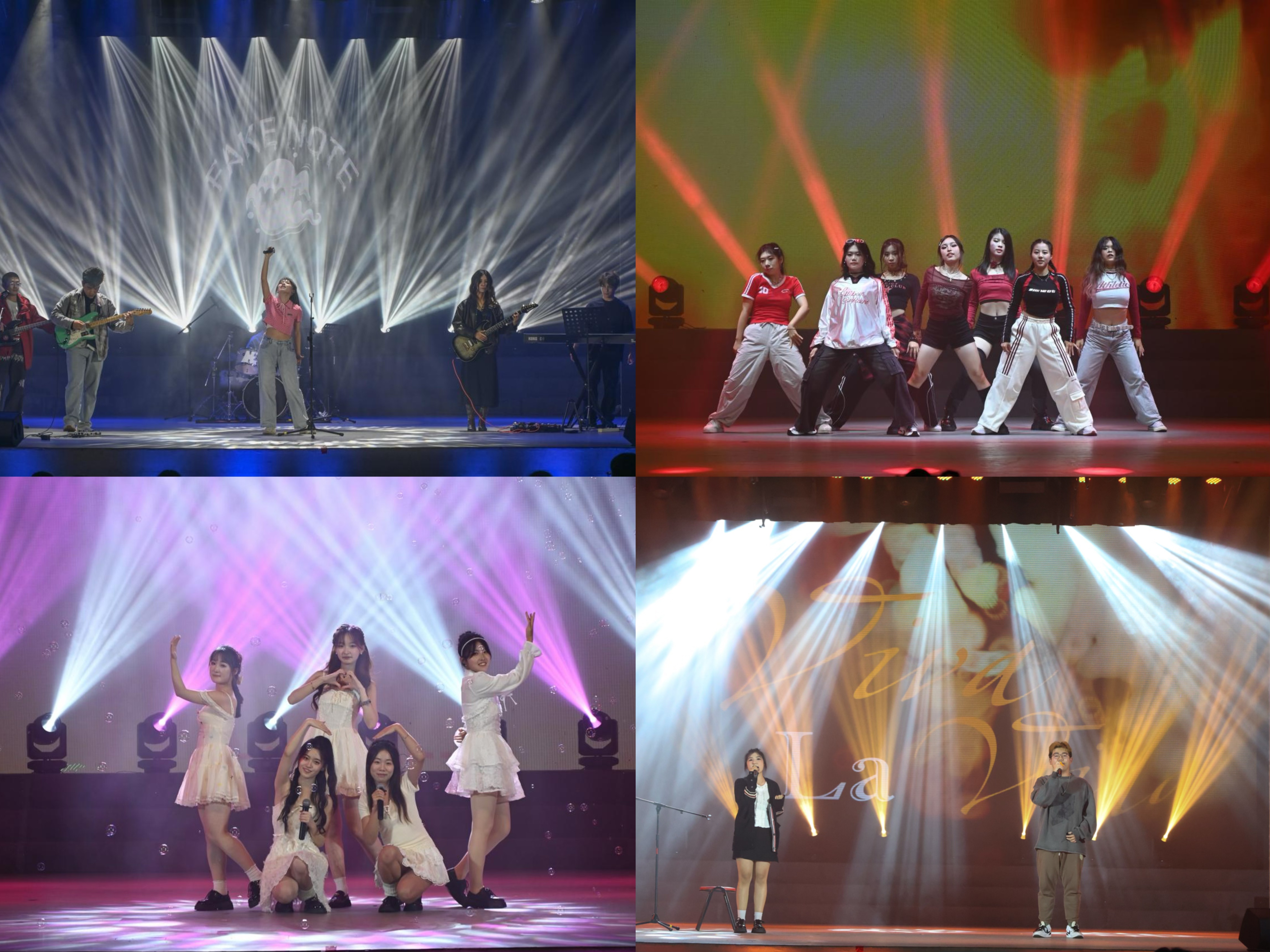 伴随着面包怪兽乐队的登台,晚会进入终章,三首经典歌曲串烧引起同学们一阵阵欢呼。光影交错,模特队带来的走秀《神霄绛阙》,展现了文化的交融与时尚的魅力,赢得了同学们的惊叹。而舞蹈《whiplash》以强烈的舞台感染力,将晚会再次推向高潮。晚会接近尾声,陈敏叡个人独唱《同花顺》,精湛的演唱技巧令人叹服。这个美好的夜晚由空灵美丽的合唱《大鱼》结尾,仿佛让人身处“满船清梦压星河”的夜色中。晚会的终章也标志着迎新晚会落下帷幕,但厦园逐梦之旅才刚刚开始。愿凤凰花的火红与热情,伴随每一位新生在厦园的每一天,勇敢地追逐梦想,坚定地走向未来。
