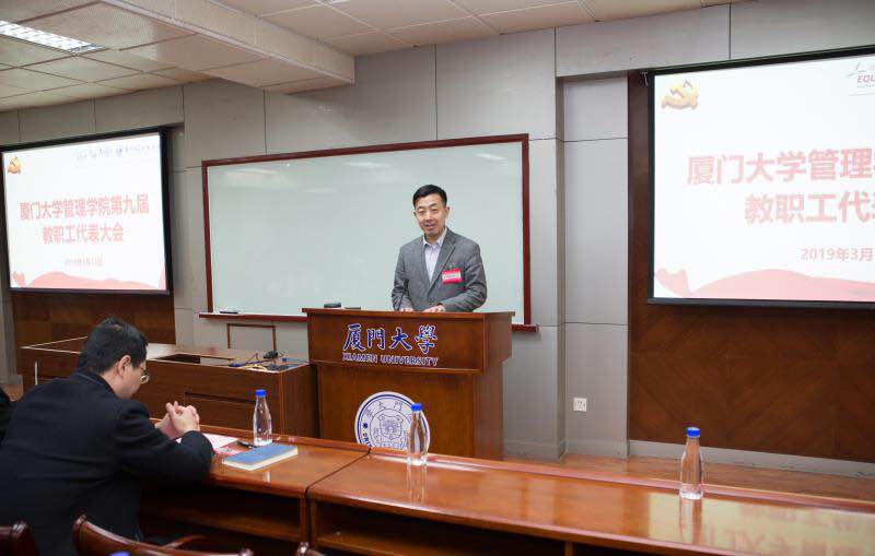 邱书记指出,管理学院是学校较大的学院之一,工商管理学科在厦大历史悠久,广大教职工应该从大历史时空观的角度,把我们学院的文化提炼出来,形成包容、欣赏、务实的文化氛围。教代大会是代表们参政议政的平台,希望通过这个平台,给予广大教职工更多参与感、获得感。