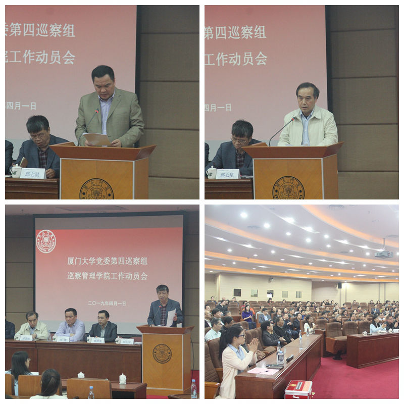 2019年4月1日下午15时,按照学校党委工作部署和学院工作安排,校党委第二轮巡察第四巡察组巡察我院工作动员大会在克立楼三楼报告厅召开。校纪委副书记、纪委办主任、巡察办主任林金枝,第四巡察组组长刘弢,副组长孙梓光、张莹,成员高斌、刘建敏,工作人员林晶、郑建斌等出席大会。大会由院党委书记邱七星主持,学院领导班子成员、全体在职教职工及部分担任过院领导的退休干部等参加了动员大会。