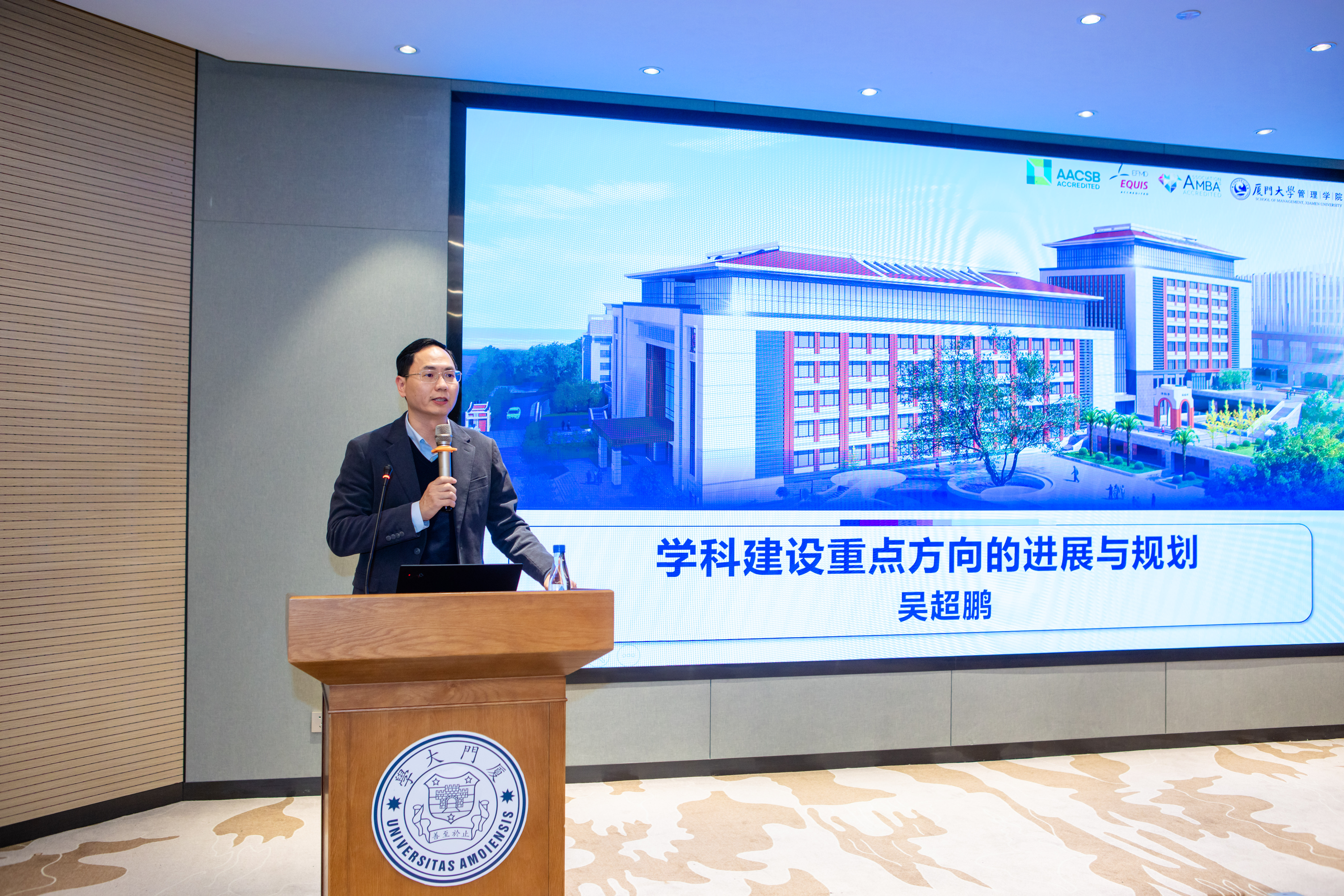 吴超鹏围绕“学科建设重点方向的进展与规划”的主题作总结讲话。他强调,要继续推进人工智能赋能管理学科变革,并介绍过去一段时间在“AI+商科”的专业建设、课程体系建设、学术平台建设、AI实验室建设上的成效;要持续推动中国管理学自主知识体系构建,面向国家战略需求、企业发展需求和管理理论前沿,以原创性、前沿性、应用性为导向,注重不同学科交叉融合、不同范式交叉融合。他希望学院教师在科研中进一步立足中国企业管理实践,为管理学理论发展贡献中国智慧、厦大智慧。