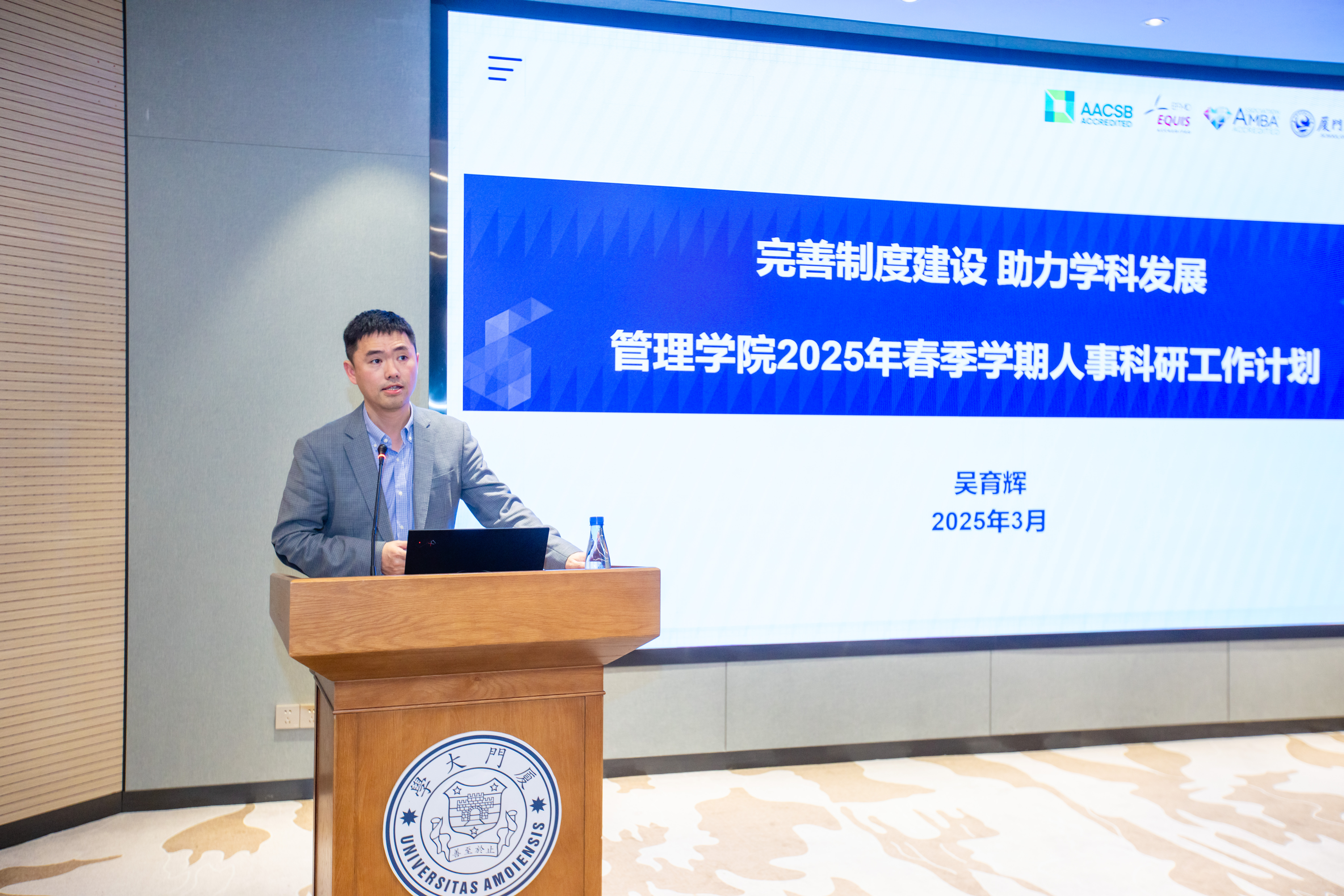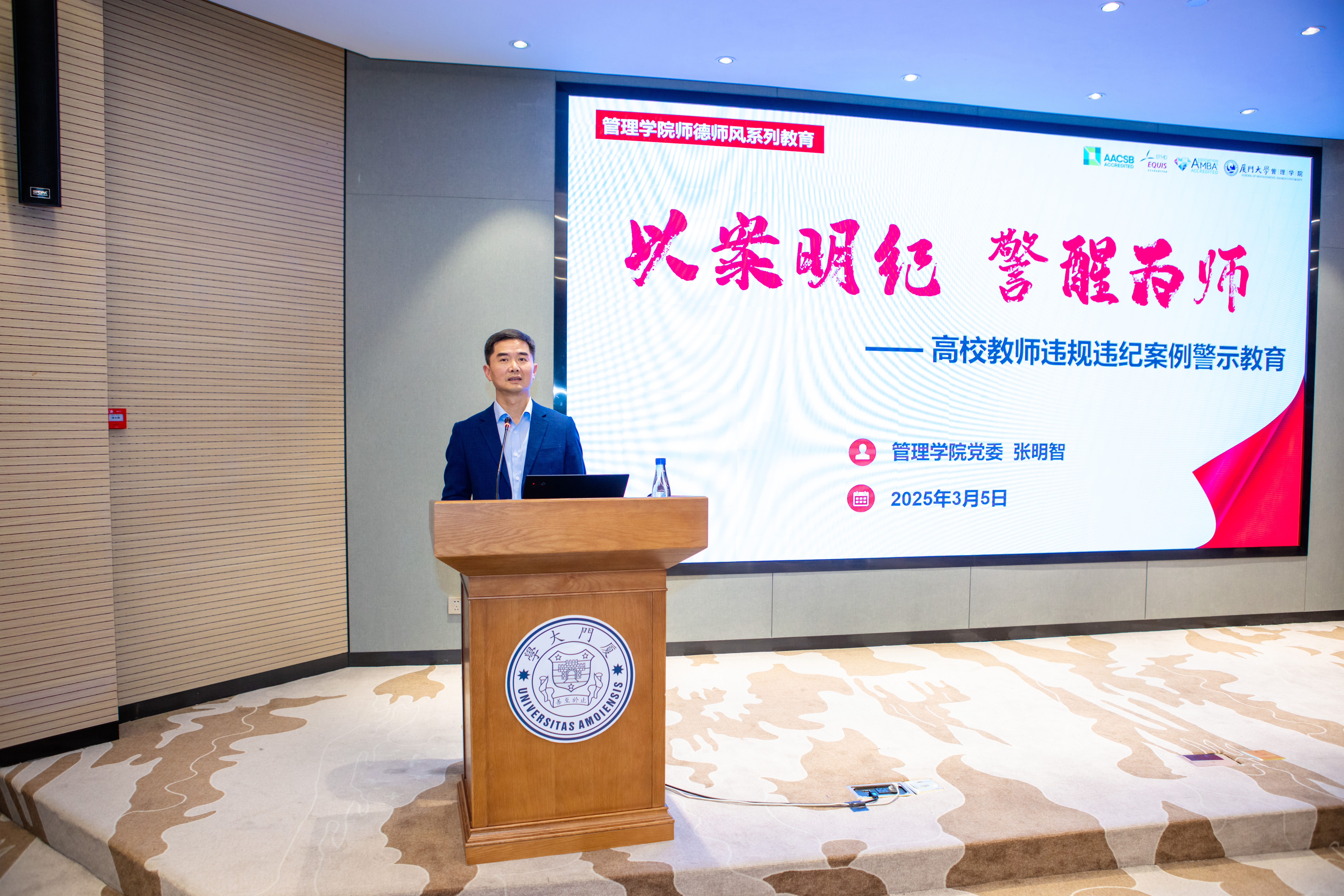 会上,张明智传达了厦门大学2025年工作布置会的精神。他谈到筑牢师德根基的重要性,通过师德师风典型案例警示教育,强化教师队伍的职业道德建设。张明智回顾过去一年学院在党建思政、社会服务等方面取得的成效,并从打造示范标杆、课程思政等方面对党建工作进行布置。他激励全院教职工以高度的责任感和使命感,精诚协作、团结奋斗,共同为管理学院高质量发展添砖加瓦。