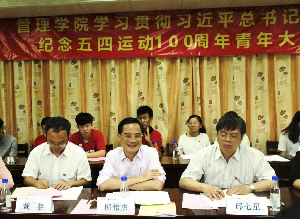 4月30日下午,管理学院党委在嘉庚一410室组织青年师生开展学习贯彻习近平总书记重要讲话精神暨纪念五四运动100周年“青年大学习大讨论”,校党委常委、副校长邱伟杰出席并讲话,学院党委书记邱七星、党委副书记戴蓥以及学院团委全体辅导员、学生党团支部代表参加了讨论学习。