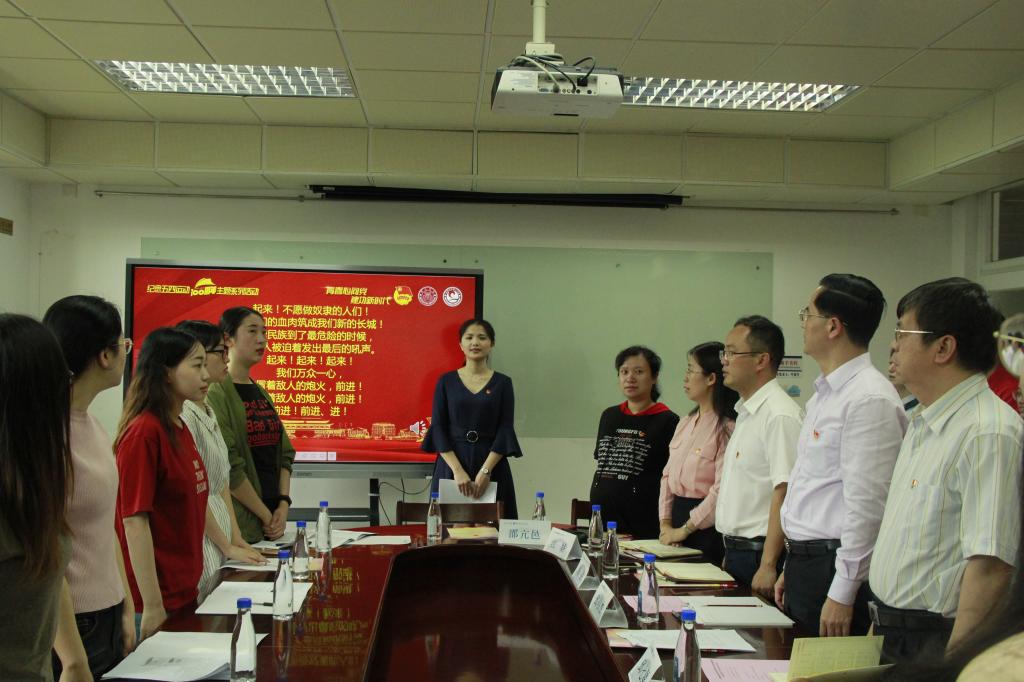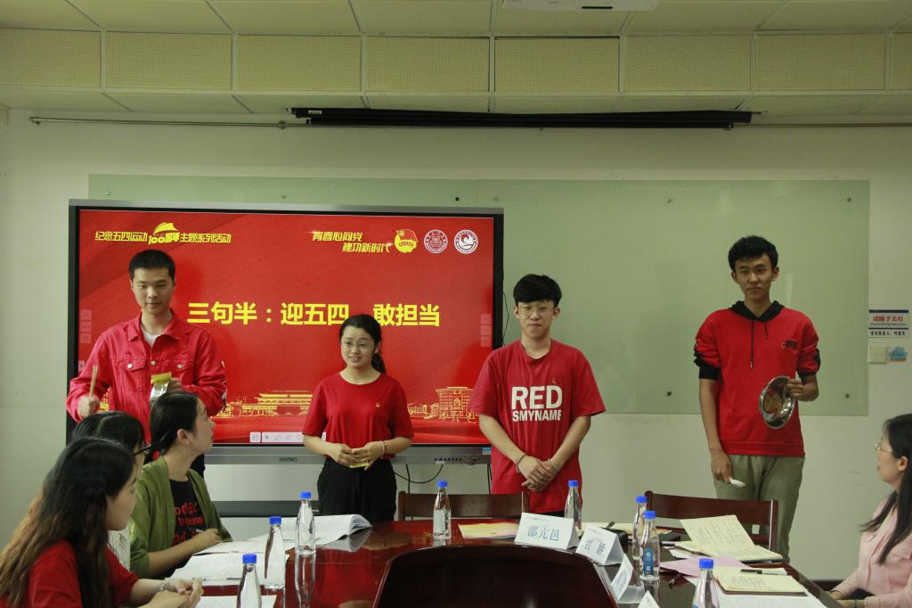 在现场,师生共同观看了习近平总书记关于青年的系列重要讲话视频,学院本科生党总支联系人陈怡婷针对“五四精神”作了重点解读。由本科生党支部入党积极分子所带来的“三句半”表演《迎五四,敢担当》,以生动的语言阐述了五四精神的核心内涵,号召广大青年学子矢志奋斗。